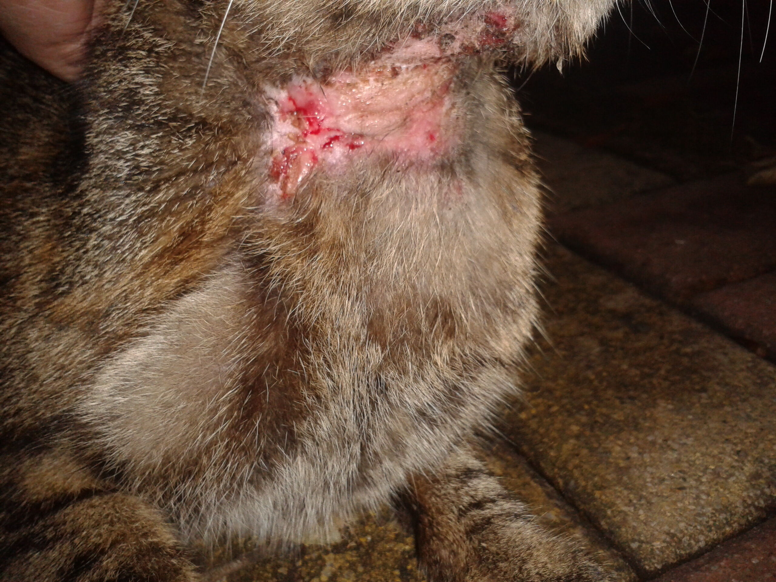 慶幸好在遇見好心人幫牠把橡皮筋取下,否則後果勢必會更嚴重,不過因為沒第一時間治療,貓咪會因不舒服而去抓受傷部位..所以擴大靡爛..