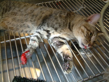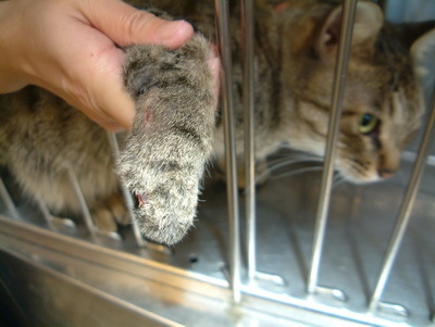 主題: 啣 申請者姓名: 張胖子 花色: 申請日期: 2012-12-17 15:09:12 申請者部落格: 申請者臉書網址: 所在縣市/合作醫院: 台北市/大葉動物醫院 治療費用: 15100元 需求人數: 16人 已結案 (2013-02-23 14:33:15) 報名人員: miraai(已付款)、小燁(已付款)、波波(已付款)、Lisa White(已付款)、珊珊(已付款)、郭欣堯(已付款)、如意(已付款)、倪芽芽(已付款)、黃子窈(已付款)、April Wen(已付款)、angelcat(已付款)、Amy(已付款)、Kaetzchen(已付款)、Maureen Huang(已付款)、roxanne(已付款)、胡亞娜(已付款)、 候補人員: 懂懂沒、 動物病情說明: 由板橋收容所救出的貓,起先以為只是受傷,但麻醉打開原本包紮的彈繃後,發現不但腿已斷且傷口悶太久有壞死及感染,考慮到不能放養,於是盡力找好心人士收養.治療期間需每日麻醉清創包紮,故請大家一起幇忙,謝謝.