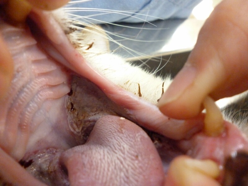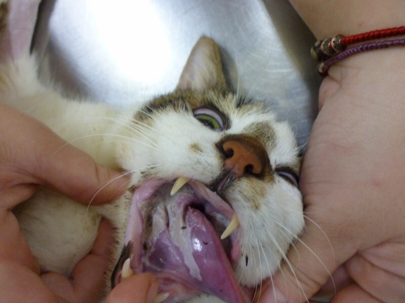 此貓很兇悍當然不可能乖乖讓醫生處理口腔,每次都要麻醉清理, 無法進食期間只能靠輸液維持~經過醫療,已可進食,所以可以出院~但基本上口腔腫瘤除了外科處理外, 最好需要配合電療及化療~但基於龐大醫療費用,醫院先採取外科處理, 但此病復發率高, 所以目前雖然可以出院, 志工也找到了暫時寄養的地方持續觀察貓咪的狀況.