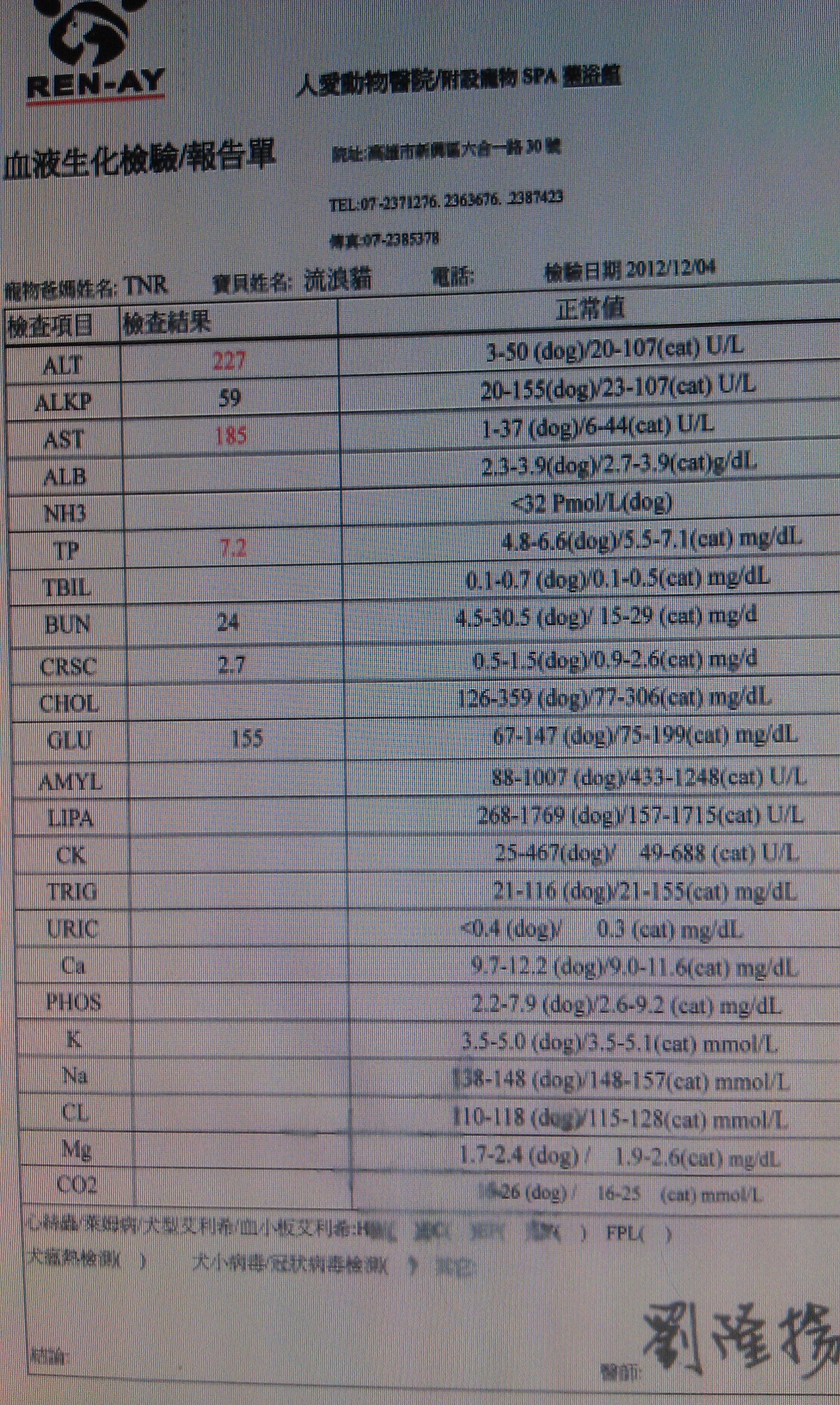 到院後, 醫生幫貓咪做二合一的檢驗呈現陰性~口腔潰瘍初步排除是貓愛滋引起, 接下來