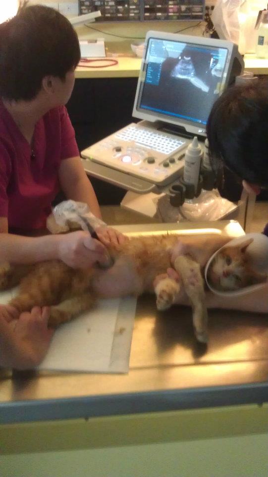 捲捲有腹水,所以晚點會幫他開刀,順便結紮