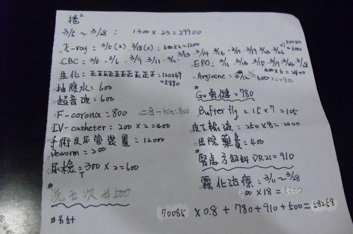PS:捲捲第一家住院 X光 血檢(由周大姐已支付)