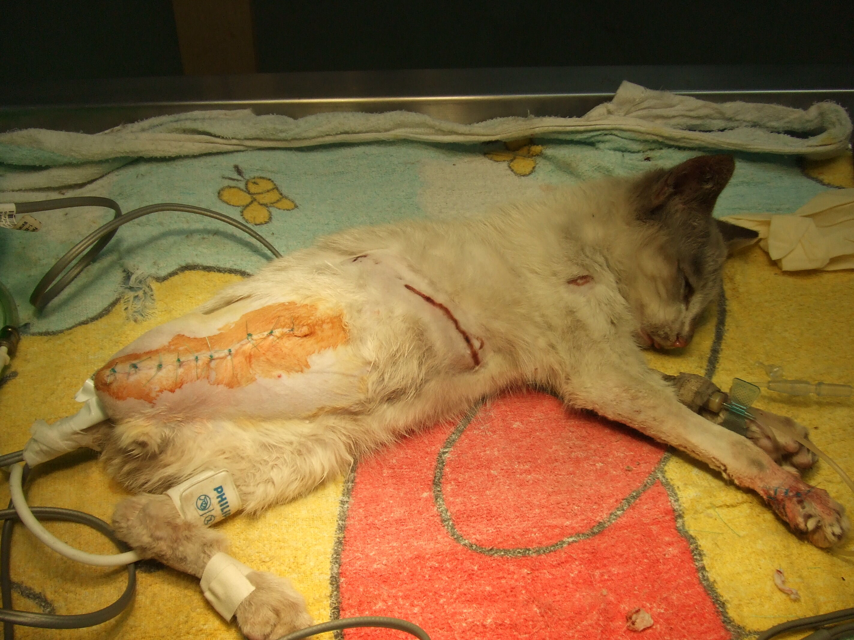 主題: 虛弱受傷需截肢的流浪貓 申請者姓名: 廖惠玲 花色: 申請日期: 2012-12-25 13:07:23 申請者部落格: 申請者臉書網址: 所在縣市/合作醫院: 新北市/愛欣動物醫院 治療費用: 13750元 需求人數: 15人 已結案 (2013-08-06 13:45:37) 報名人員: Jerry(已付款)、Snow Liao(已付款)、愛貓婷(已付款)、YPing(已付款)、Eli Tsao(已付款)、Sheirly Chu、杜杜(已付款)、Hsin Tang(已付款)、上岸、上岸、上岸、上岸、上岸(已付款)、kaoli1218(已付款)、塔羅貓(已付款)、小可(已付款)、春卷(已付款)、mina(已付款)、貓婷(已付款)、okina、Weirong(已付款)、 候補人員: 小可、 動物病情說明: 此貓被愛心人士撿來時 非常虛弱 且兩後肢都有受傷 其中一後肢需截肢 另一後肢傷口經 非常虛弱 且兩後肢都有受傷 其中一後肢需截肢 另一後肢傷口經清理後逢 且兩後肢都有受傷 其中一後肢需截肢 另一後肢傷口經清理後縫合 經住院調理後此 其中一後肢需截肢 另一後肢傷口經清理後縫合 經住院調理後此貓狀況已大有改善