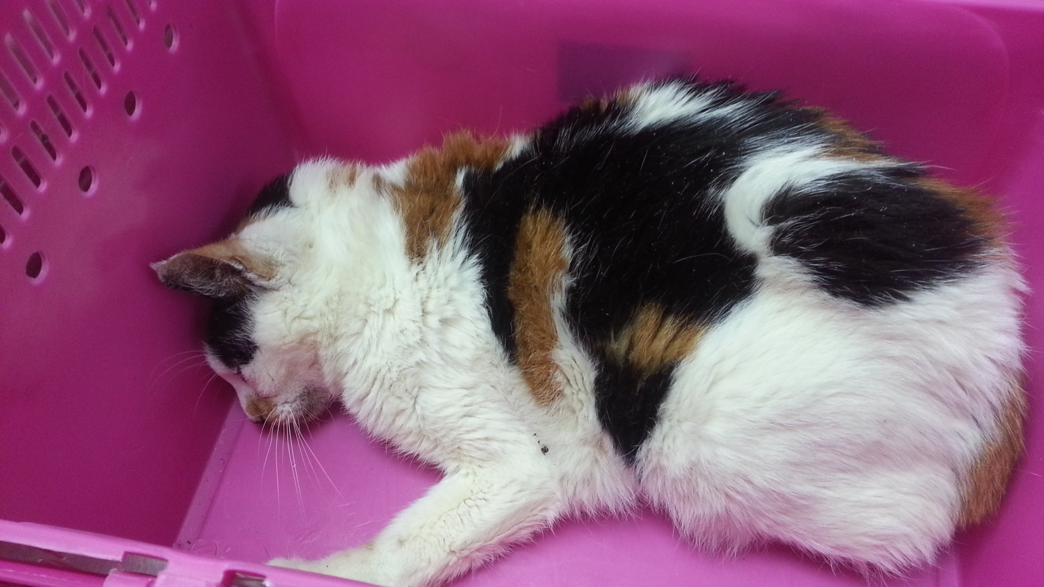 主題: RE:口嚴重發炎潰爛貧血小三花 申請者姓名: 岳丹楓 花色: 申請日期: 2012-12-26 16:57:12 申請者部落格: 申請者臉書網址: 所在縣市/合作醫院: 台北市/澄毅動物醫院 治療費用: 7900元 需求人數: 18人 已結案 (2013-06-27 14:07:53) 報名人員: Cheryl Chi Chi(已付款)、黃幽靈(已付款)、Justin Verlander(已付款)、Sandy Chan(已付款)、鬆餅(已付款)、Crea Lin(已付款)、みちゃん、Hui Mei Chen(已付款)、Amy(已付款)、Mei Fujihala(已付款)、cenry(已付款)、周星星 (此功德迴向給阿貓)(已付款)、Jo Chia Lu(已付款)、Jo Chia Lu(已付款)、Chiao Yun Yu(已付款)、Angela Huang、Mia Wei(已付款)、Julia(已付款)、ming(已付款)、小小瑋(已付款)、 候補人員: 動物病情說明: 這隻三花妹是志工餵食浪貓途中途然出現的,
