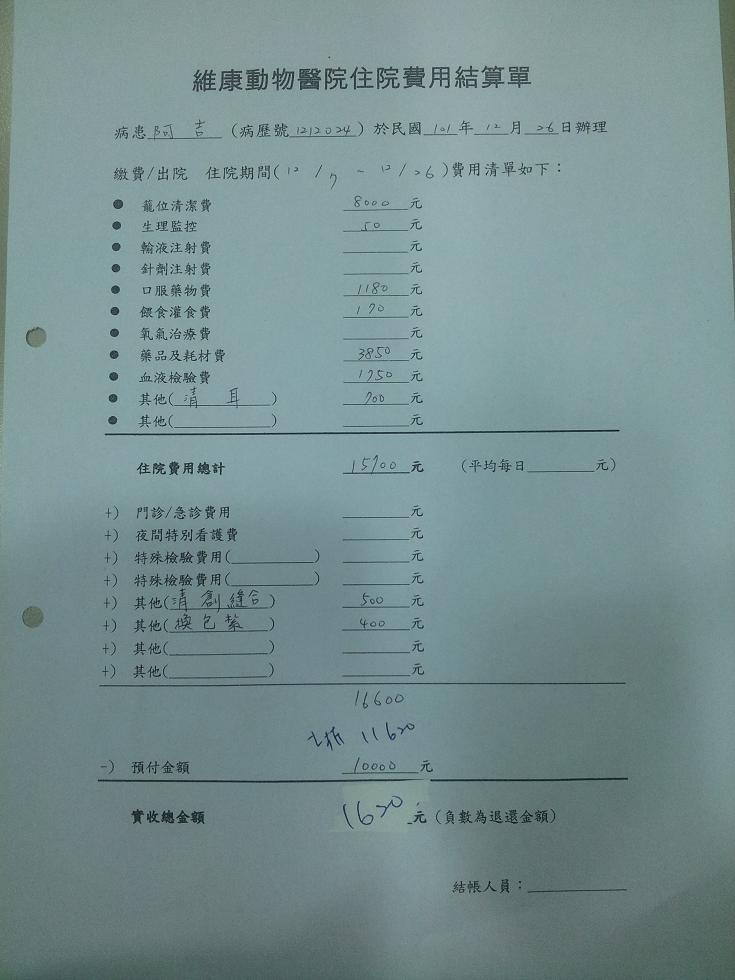 主題: 林彥伶 申請者姓名: Silvia Lin 花色: 申請日期: 2013-01-02 15:03:43 申請者部落格: 申請者臉書網址: 所在縣市/合作醫院: 台北市/其他院所醫助專案(醫院請先MAIL溝通) 治療費用: 11620元 需求人數: 13人 已結案 (2013-02-23 12:05:21) 報名人員: 火鳳貍(已付款)、愛喵garnet(已付款)、Purplefish Chen(已付款)、Jamie(已付款)、游妹妹(已付款)、Elin Chao(已付款)、白婷(已付款)、Amy(已付款)、凱特(已付款)、瀅瀅(已付款)、hero178(已付款)、sally(已付款)、sally(已付款)、 候補人員: 動物病情說明: 斷肢小貓終從維康出院了
