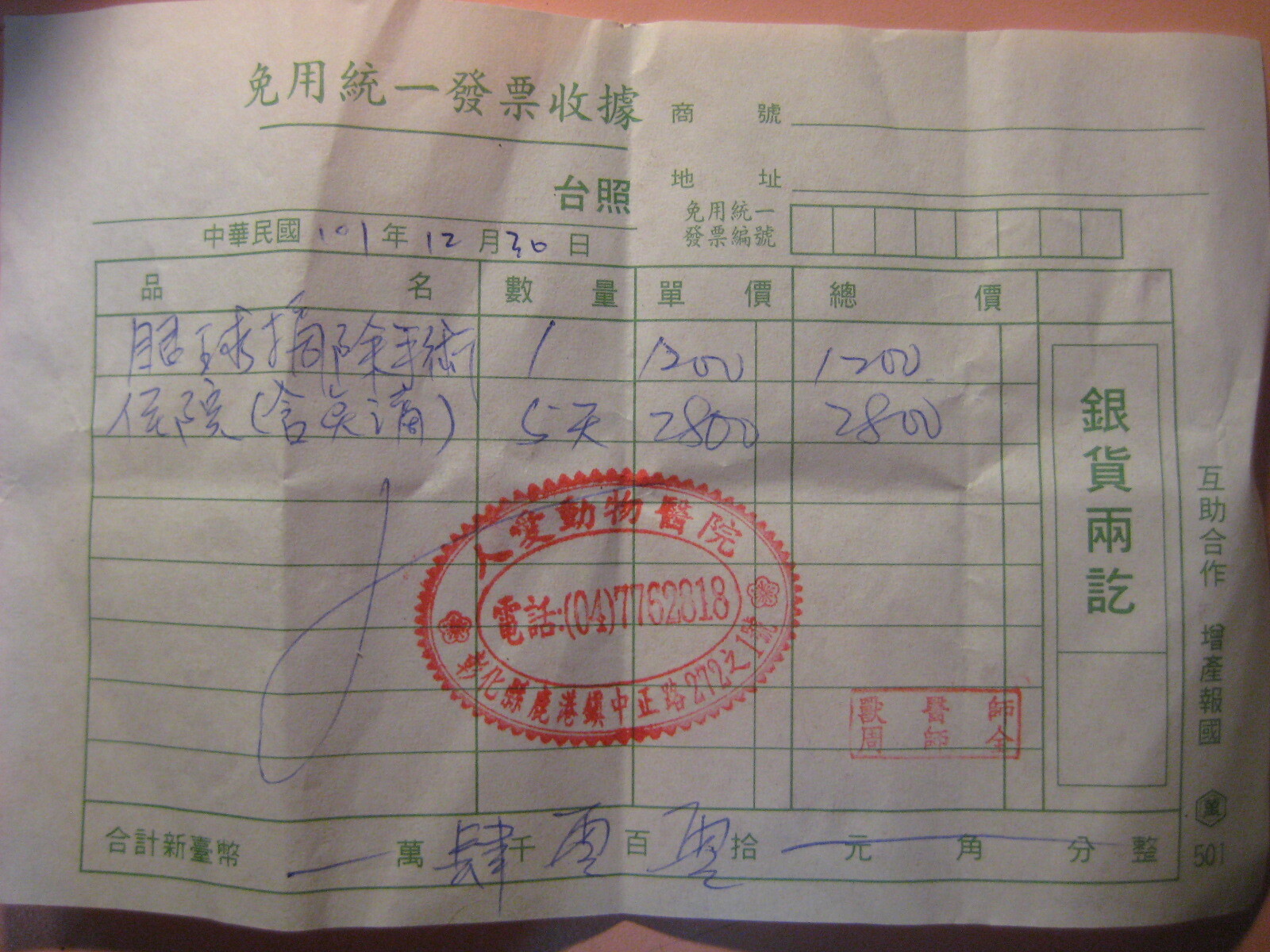 主題: 右眼重傷的公黑貓 申請者姓名: 許桂菱 花色: 申請日期: 2013-01-05 01:36:16 申請者部落格: 申請者臉書網址: 所在縣市/合作醫院: 彰化縣/人愛動物醫院 治療費用: 4000元 需求人數: 9人 已結案 (2013-02-23 11:59:18) 報名人員: Nico Huang(已付款)、小P(已付款)、淇勻(已付款)、李秋英(已付款)、豆腐(已付款)、豆腐(已付款)、豆腐(已付款)、豆腐(已付款)、豆腐(已付款)、 候補人員: 李安妮、 動物病情說明: 這是志工住家附近已TNR的浪貓,12中旬突然失蹤10來天,再出現時右眼卻重傷!緊急送醫摘除右眼珠,鼻腔也嚴重感染,經過一星期治療後病狀漸好轉也能自行進食,為節省住院費用志工先帶回自家療養!