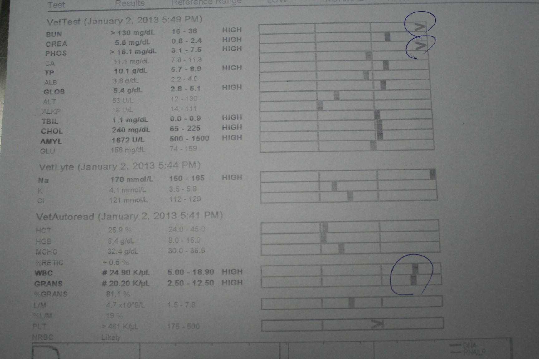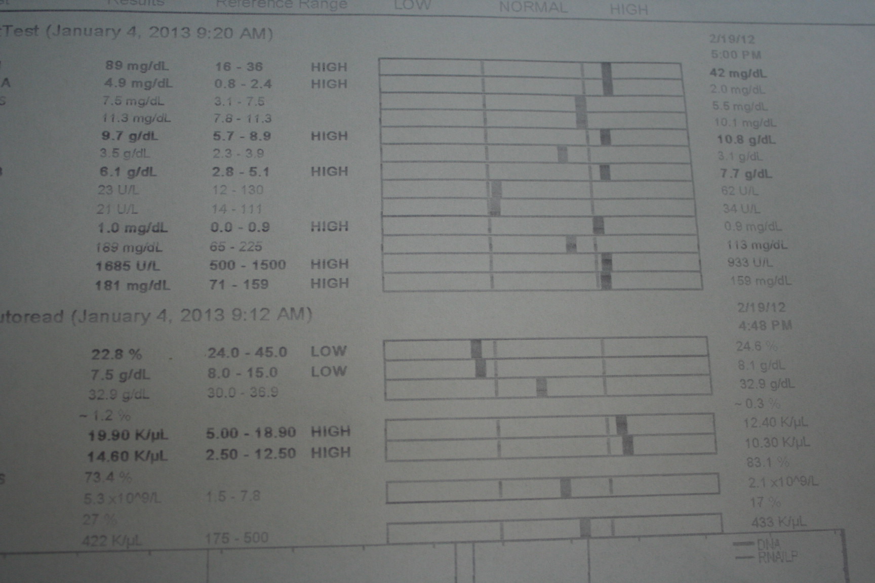 橡皮筋的腎臟的指數已有二個驗不出來(因為太高了)...