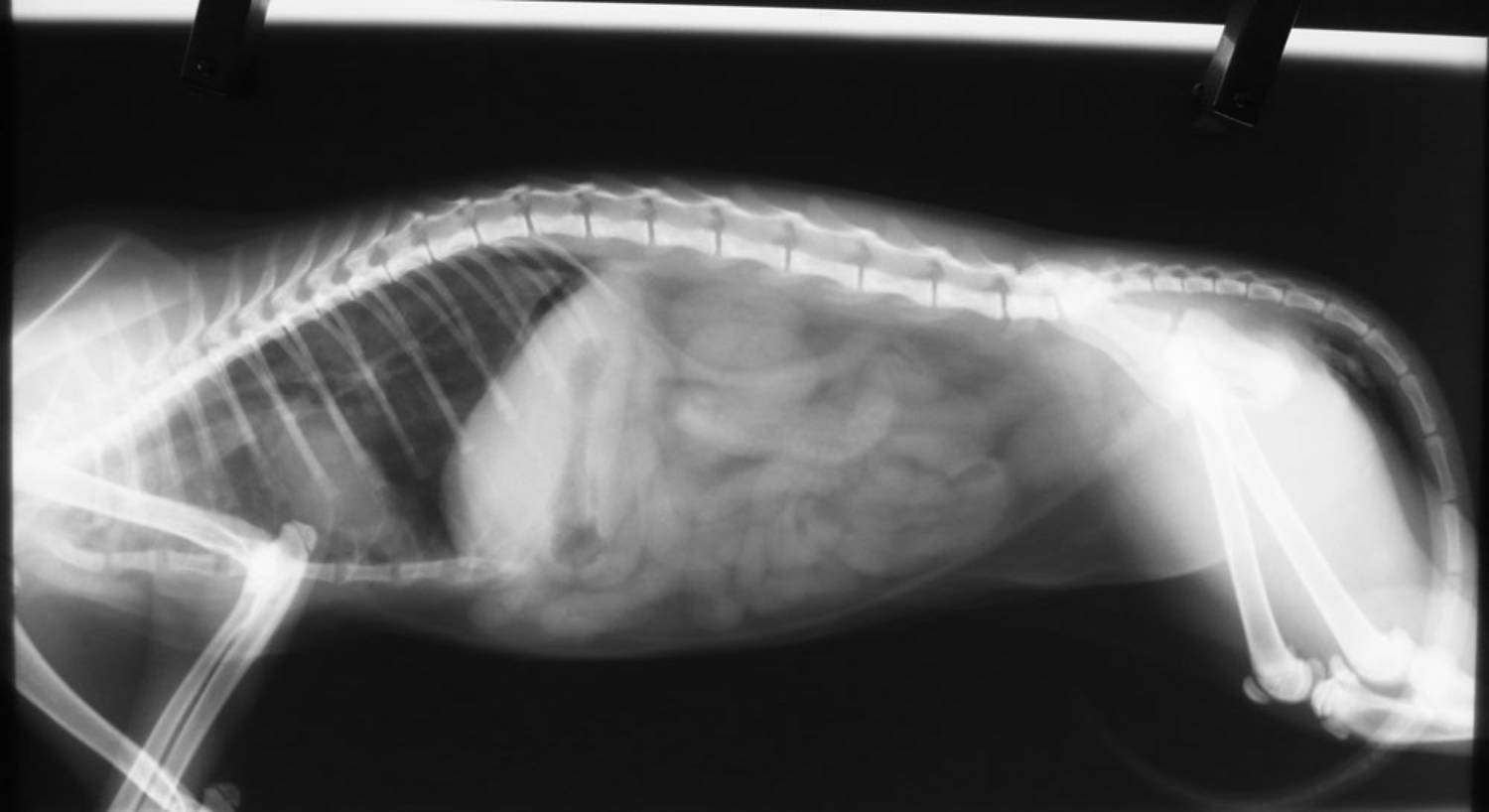 斷了,胸腔出血,呼吸有困難,先住院,並提供氧氣,讓貓呼吸能順暢一點