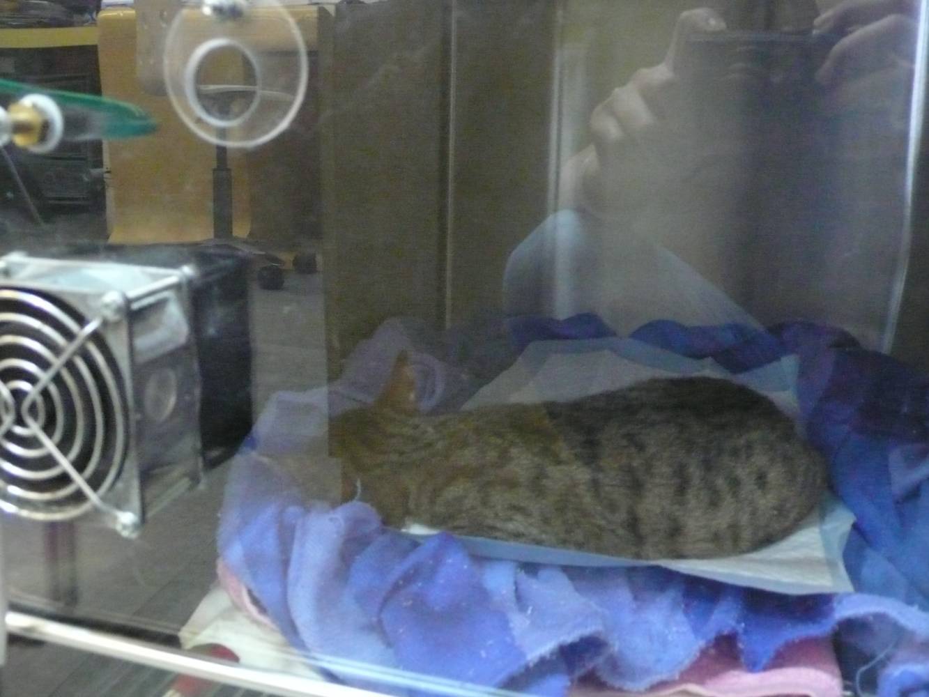 下車後發現他突然動了!又吐血,還沒死!當下就緊急將貓送到最近的醫
