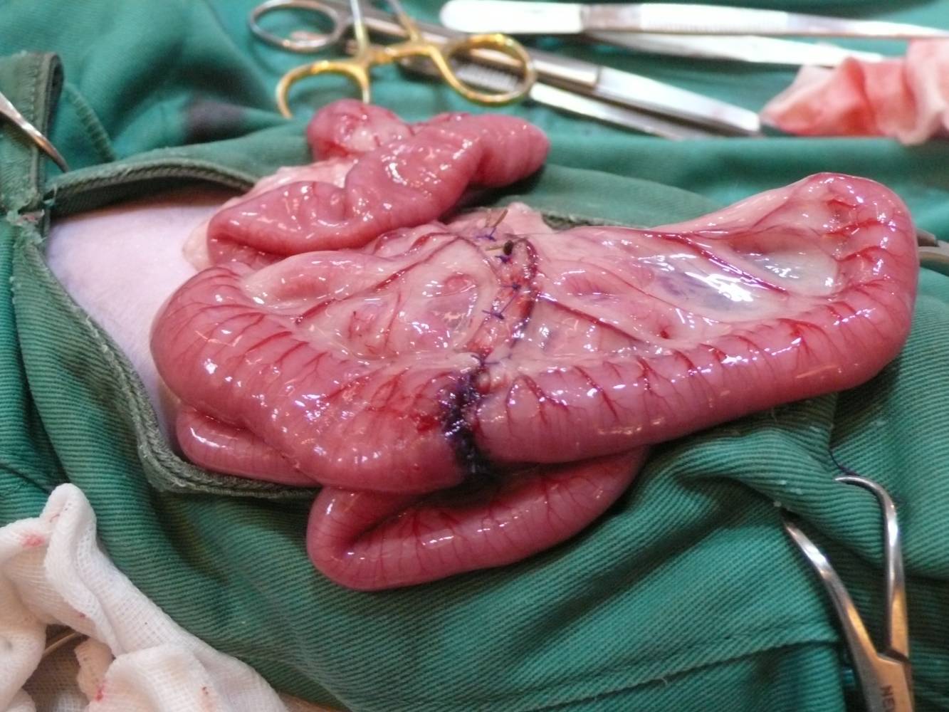 腸道阻塞,後來開腹發現他的腸道有一段突然縮小,後來病理檢查是淋巴