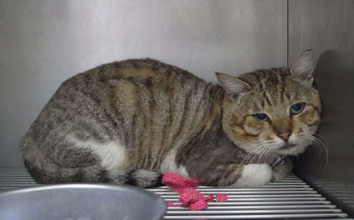 主題: 疑似人為虐待受傷貓 申請者姓名: 陳世芬 花色: 申請日期: 2013-01-29 05:02:33 申請者部落格: http://tw.myblog.yahoo.com/ni-blackcat 申請者臉書網址: http://www.facebook.com/fandy.chen 所在縣市/合作醫院: 高雄市/人愛動物醫院 治療費用: 6660元 需求人數: 7人 已結案 (2013-08-06 13:52:44) 報名人員: noahshoes(已付款)、陳亮豪、邱珮綺(已付款)、咪咪(已付款)、蔡明亨(已付款)、Cathy Chang(已付款)、Mei Fujihala(已付款)、Ting Huang(已付款)、 候補人員: KO.PON、 動物病情說明: 這隻大頭公貓是去年12月在我的TNR區出現的新貓,和另一隻新公貓有時會互相嗆聲,我餵養至今年,想說抓來結紮維持和平,1/17兩隻都抓到結紮,送醫後,醫院檢查發現兩隻都有受傷,這隻傷勢較重。