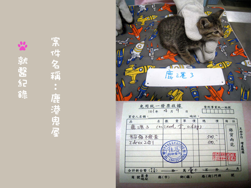 主題: 鹿港1鹿港2鹿港3小柑4小黑5 申請者姓名: 吳育純 花色: 申請日期: 2012-04-14 04:04:54 申請者部落格: 申請者臉書網址: https://www.facebook.com/profile.php?id=100000106942160 所在縣市/合作醫院: 台中市/佳恩動物醫院 治療費用: 6900元 需求人數: 10人 已結案 (2012-04-26 09:10:35) 報名人員: Summer Chen(已付款)、cherry.shu(已付款)、張家蓁(已付款)、珊珊(已付款)、Sky Lin(已付款)、閻永安(已付款)、閻永安(已付款)、心慈劉(已付款)、jaja(已付款)、嘟嘟(已付款)、 候補人員: 動物病情說明: 鹿港鬼屋