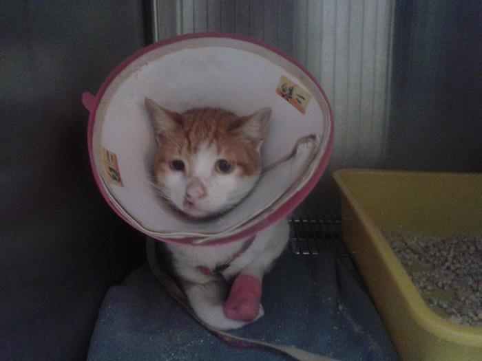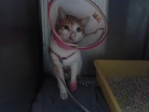 主題: 被捕獸夾夾斷的浪貓 申請者姓名: 楊美雪(郝先生) 花色: 申請日期: 2013-01-31 21:33:45 申請者部落格: 申請者臉書網址: 所在縣市/合作醫院: 台北市/長青動物醫院 治療費用: 18000元 需求人數: 19人 已結案 (2013-08-06 13:51:51) 報名人員: Ping Hussard(已付款)、Richard Hsu(已付款)、Elaine Lin(已付款)、小王(已付款)、Tsai Dobbie(已付款)、Joy(已付款)、Candace Shiue(已付款)、葉小布(已付款)、Mei Hsien Liu(已付款)、Mo Wa、ㄚ珠(已付款)、Kelly(已付款)、那安那(已付款)、chanru(已付款)、Taco Chang、Joyce Tseng(已付款)、翅膀(已付款)、Pei Ying Liao(已付款)、林悠 悠(已付款)、Hui Mei Chen、Shizuka Ho(已付款)、Hsin-Yi Chiao(已付款)、 候補人員: 動物病情說明: 這隻浪貓被夾斷前,曾失蹤1星期..後來發現時已經斷了左前腳爪..並且還在流著血+嚴重感冒!