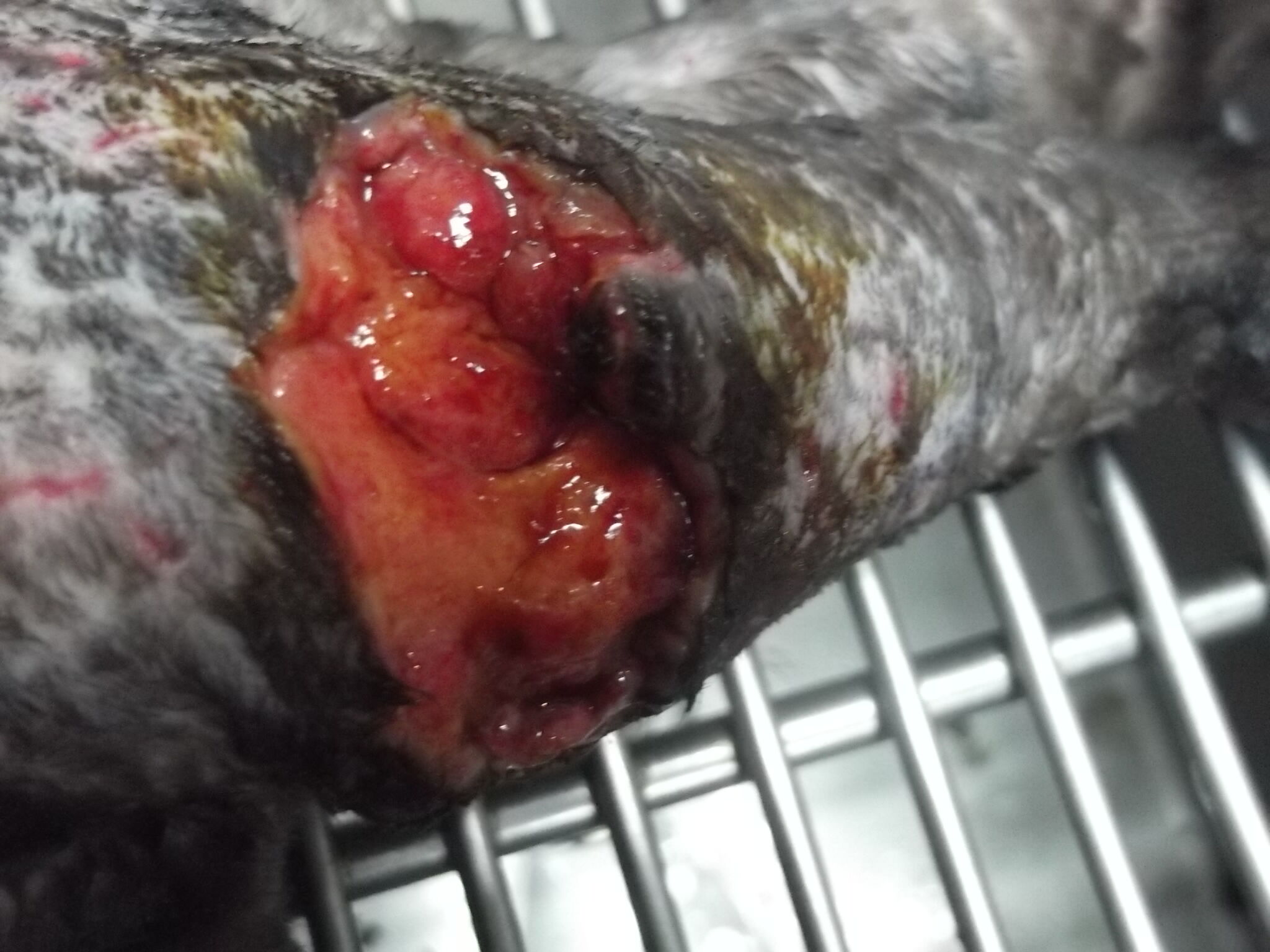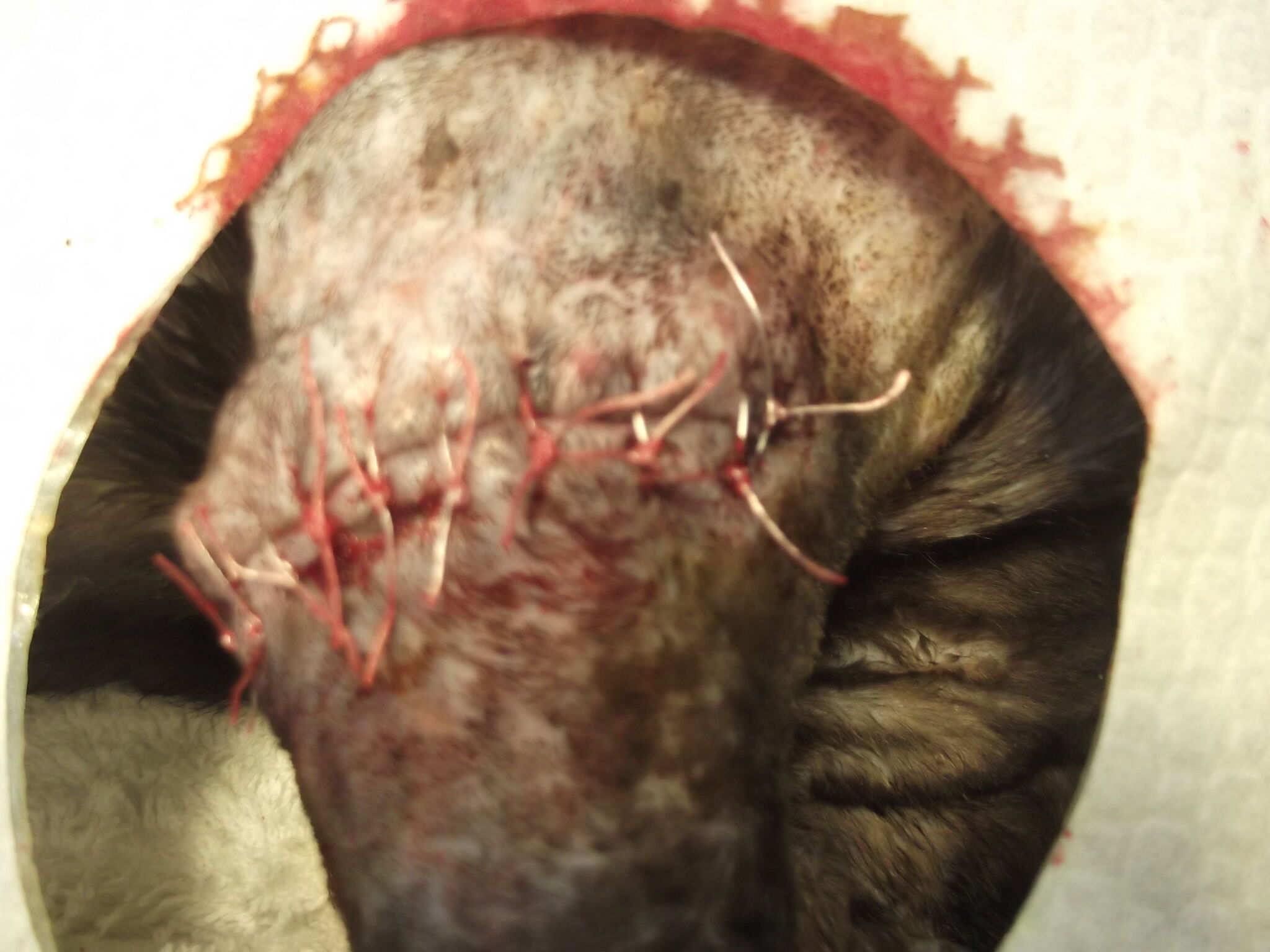 傷口據醫生判斷須另作清創及縫合手術,但因為傷口為感染性傷口所以住院至傷口感染控制下來後才做縫合。