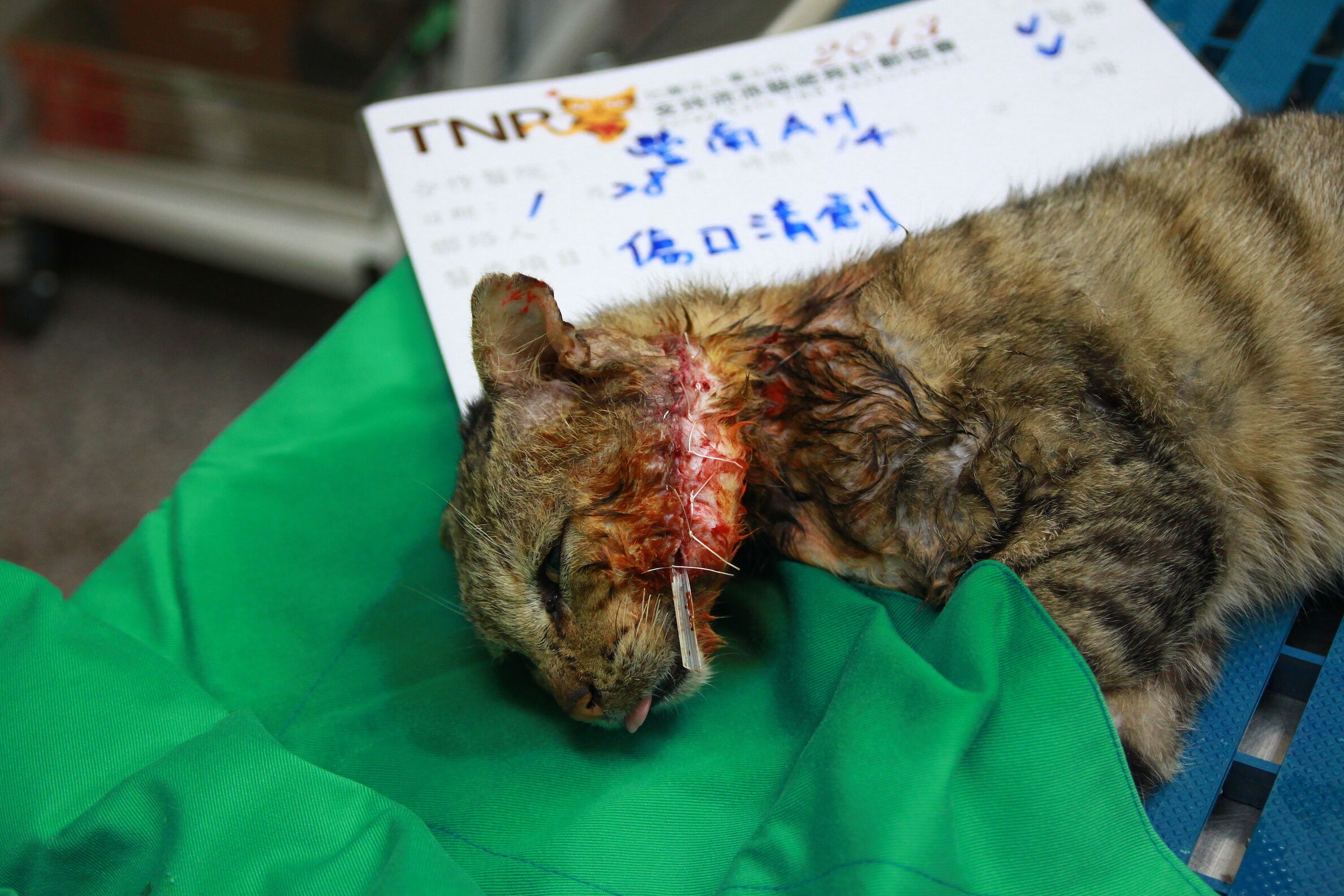 主題: 打架受傷的老貓 申請者姓名: Vinvin Liu 花色: 申請日期: 2013-02-05 15:41:09 申請者部落格: 申請者臉書網址: 所在縣市/合作醫院: 台中市/豐南動物醫院 治療費用: 3500元 需求人數: 8人 已結案 (2013-02-23 11:54:54) 報名人員: 林美君(已付款)、崔太狼(已付款)、林廷軒(已付款)、鍾瓜瓜(已付款)、Ping Meng(已付款)、Zoe Chen(已付款)、喵嗚(已付款)、Ning(已付款)、 候補人員: 動物病情說明: 平日餵養的流浪貓非常親人,平時會在來家門口吃東西,突然一陣子沒出現,再出現時發現貓咪變瘦左臉頰有上傷口並且發炎化濃,馬上送醫治療醫院做了清創手術並且住院治療,因為傷口化濃嚴重又做了第二次的清創