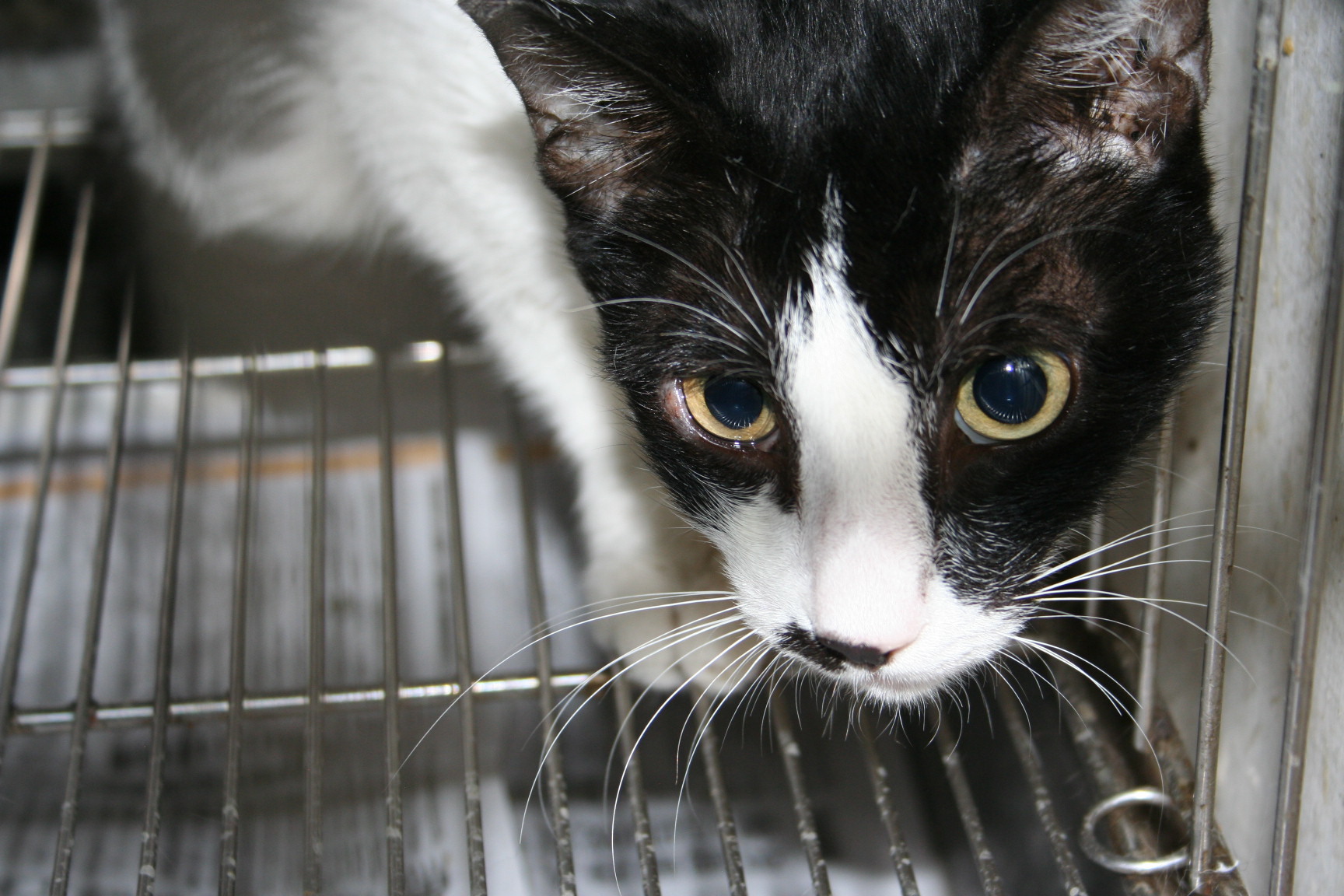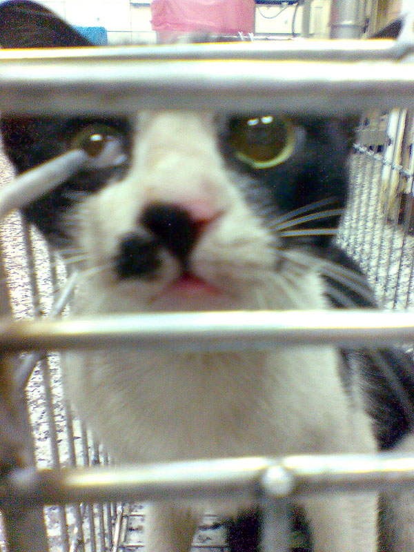 主題: 黑白跛腳貓眼瞼手術+腳傷住院費 申請者姓名: 陳世芬 花色: 申請日期: 2012-04-18 03:29:01 申請者部落格: http://tw.myblog.yahoo.com/ni-blackcat/article?mid=25621 申請者臉書網址: 所在縣市/合作醫院: 高雄市/回生動物醫院 治療費用: 6200元 需求人數: 6人 已結案 (2012-05-07 09:57:40) 報名人員: Sam(已付款)、Fandy代收(由snowshoe捐款)(已付款)、Nonie Huang(已付款)、李安芬(已付款)、AdaLin(已付款)、王踢娜(已付款)、 候補人員: 動物病情說明: 這隻黑白貓是4月初在高雄漢神百貨附近的巷子看到的,看到時牠跛腳,有點警戒,回家看照片才發現牠的右眼怪怪的,是第三眼瞼脫出,白白的遮住了眼球一半。