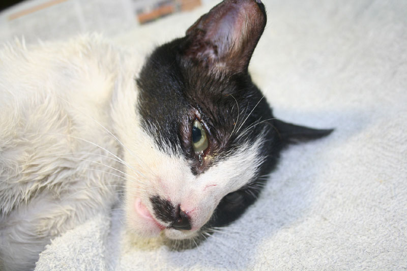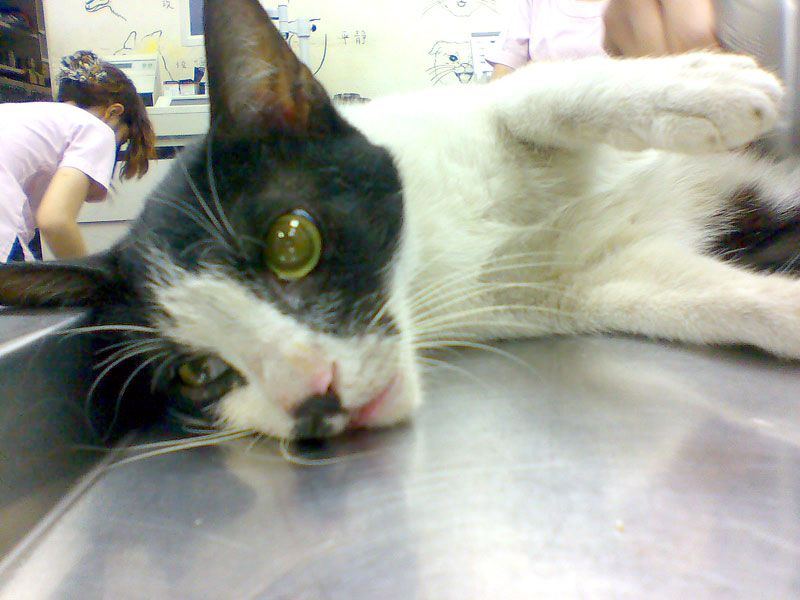 看到照片的當天下午,就跑去抓牠結紮,想說順便一起動眼睛手術,免得要麻醉兩次,抓到時腳還在流血。