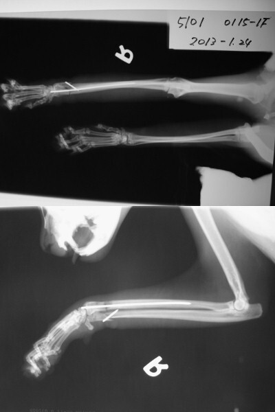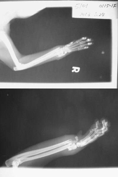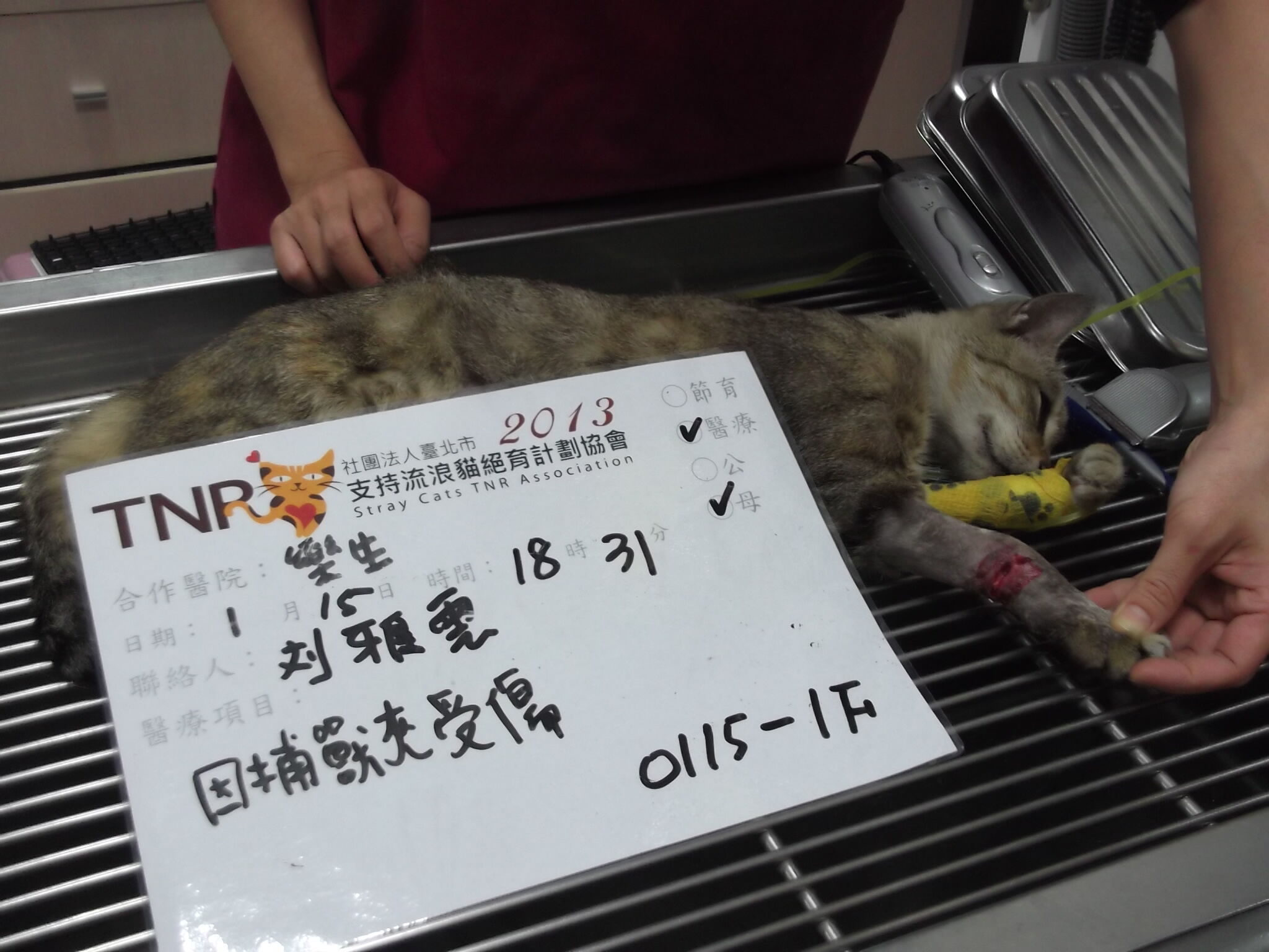 主題: 高雄 鳳山區 五福一路 老鼠夾貓咪 申請者姓名: 劉雅雲 花色: 申請日期: 2013-03-01 09:58:05 申請者部落格: 申請者臉書網址: 所在縣市/合作醫院: 高雄市/樂生動物醫院 治療費用: 18300元 需求人數: 19人 已結案 (2013-06-27 14:21:29) 報名人員: Yi-Jing Wang(已付款)、Luna Tsai(已付款)、Phyllis Chan(已付款)、雲之凡 x2(已付款)、Ray Chen(已付款)、Cay Way(已付款)、Li Li Hsieh(已付款)、王鼎方 x2、betty huang(已付款)、KAYU、謝欣蓓(已付款)、謝立立(已付款)、以四面佛名義迴向阿咪、咪仔 x5(已付款)、chiawei(已付款)、Emily Chou x2(已付款)、 候補人員: 動物病情說明: 1/15志工版裡的求援案件,被老鼠夾夾到的貓咪在地方拖行, 被好幾位民眾合力打開老鼠夾之後貓咪緊張躲到二樓的遮陽棚快4天沒下來吃東西, 後來到民眾二樓開窗去放誘捕籠抓到貓咪就醫. 醫生到院幫貓咪拍X光, 因為有骨折, 採用內固定法手術, 貓咪到院因為已經有化膿,所以留至院中治療, 恢復時間會較長.