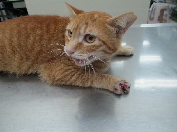 主題: 已結紮橘公貓右前肢受傷潰爛腫脹 申請者姓名: 楊溫蒂 花色: 申請日期: 2013-03-08 12:37:49 申請者部落格: 申請者臉書網址: 所在縣市/合作醫院: 台北市/欣旺動物醫院 治療費用: 4000元 需求人數: 9人 已結案 (2013-04-12 11:07:26) 報名人員: Orak Yeh(已付款)、泠(已付款)、Lisa Tsai(已付款)、荳荳(已付款)、陽羊(已付款)、philip(已付款)、Vanessa Chang(已付款)、甘茴香(已付款)、藍波(已付款)、 候補人員: 動物病情說明: 21日晚上在住家附近的自助餐店消費.巧遇TNR貓(短尾橘)在那裡乞食.多日不見嚇見他右手腫脹至上臂還流著鮮血.手的疼痛讓他無法將右手著地行走.隨之拿出車上工具將行動不便的他逮捕.就醫之後x光檢查發現橘公貓的右腳掌有骨折.研判不需做內固定.所以只要處理潰爛的傷口.3/8短尾橘的傷口都好了.也接回野放.此筆醫藥費懇請大家幫幫忙.謝謝