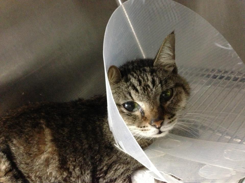 還是牙一咬,請收容所志工幫忙將貓帶出就醫,