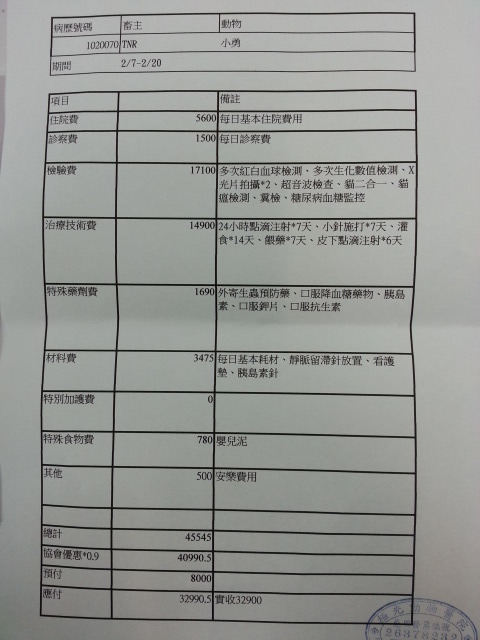 主題: 板收車禍傷及腦部的小勇 申請者姓名: 臺北市支持流浪貓絕育計劃協會 花色: 申請日期: 2013-02-24 00:58:11 申請者部落格: 申請者臉書網址: 所在縣市/合作醫院: 台北市/其他院所醫助專案(醫院請先MAIL溝通) 治療費用: 42500元 需求人數: 45人 已結案 (2013-06-27 14:19:57) 報名人員: April Tsung(已付款)、ztsai(已付款)、機車胖(已付款)、Karen Hsieh(已付款)、鍾佳臻(已付款)、Nora Chu(已付款)、JonJonYang(已付款)、協會代Sofie Lin報名(已付款)、協會代Sofie Lin報名(已付款)、協會代Sofie Lin報名(已付款)、協會代Sofie Lin報名(已付款)、協會代Sofie Lin報名(已付款)、協會代Sofie Lin報名(已付款)、協會代Sofie Lin報名(已付款)、協會代Sofie Lin報名(已付款)、協會代Sofie Lin報名(已付款)、協會代Sofie Lin報名(已付款)、協會代Sofie Lin報名(已付款)、協會代Sofie Lin報名(已付款)、協會代Sofie Lin報名(已付款)、協會代Sofie Lin報名(已付款)、協會代Sofie Lin報名(已付款)、協會代Sofie Lin報名(已付款)、協會代Sofie Lin報名(已付款)、協會代Sofie Lin報名(已付款)、協會代Sofie Lin報名(已付款)、協會代Sofie Lin報名(已付款)、協會代Sofie Lin報名(已付款)、協會代Sofie Lin報名(已付款)、協會代Sofie Lin報名(已付款)、協會代Sofie Lin報名(已付款)、協會代Sofie Lin報名(已付款)、協會代Sofie Lin報名(已付款)、協會代Sofie Lin報名(已付款)、協會代Sofie Lin報名(已付款)、協會代Sofie Lin報名(已付款)、協會代Sofie Lin報名(已付款)、MeiDan Wang(已付款)、波波(已付款)、Nancy(已付款)、紫玲(已付款)、周酒窩(已付款)、Amy(已付款)、劉蕊瑄(已付款)、Chia Min Chen(已付款)、 候補人員: Silvia Ding、Agatha、 動物病情說明: 這是在過年前,