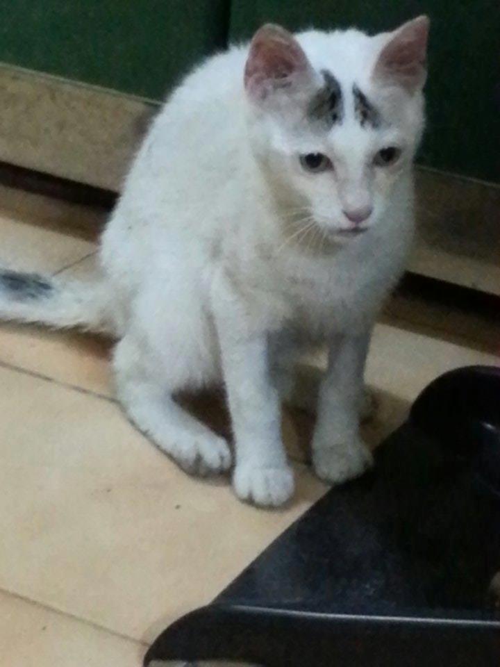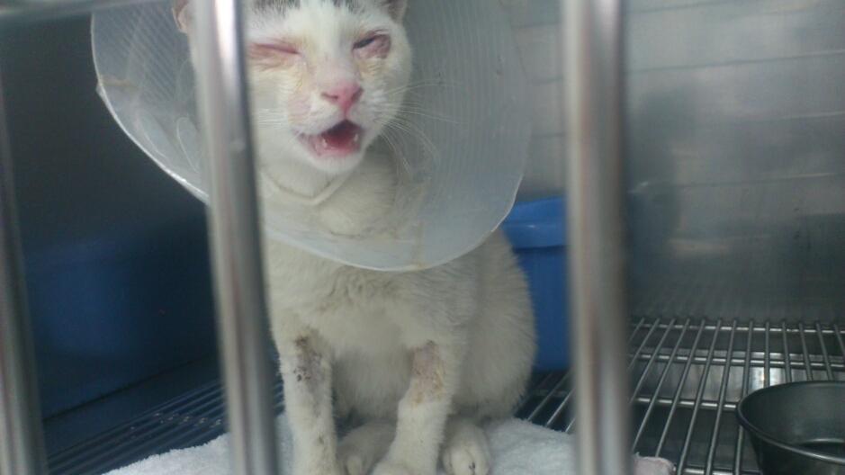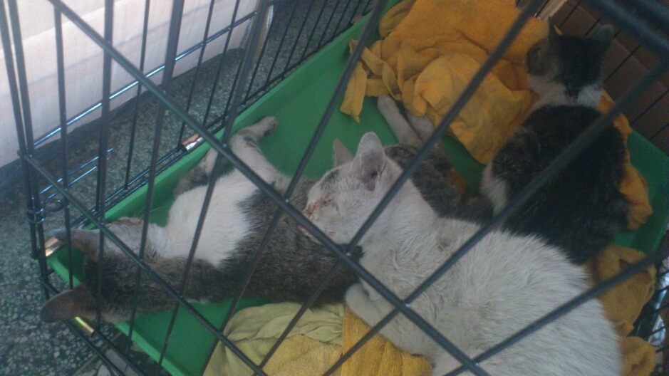 因為我常去餵養的這群小朋友們...都因為生病去當天使了...惟獨這隻小朋友撐了下來..當時生病還看到它出現..理當必須救助她..小朋友在高雄市左營區.樂生動物醫院, 經過一個月的治療終於康復了, 非常感謝醫生的努力和所有協助的朋友們.