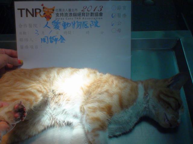 主題: 被捕獸夾傷右後腳掌之橘子貓 申請者姓名: 許桂菱 花色: 申請日期: 2013-04-10 00:04:20 申請者部落格: 申請者臉書網址: 所在縣市/合作醫院: 彰化縣/人愛動物醫院 治療費用: 5200元 需求人數: 12人 已結案 (2013-06-27 14:27:43) 報名人員: lavinia x4(已付款)、OLivia x2(已付款)、胖大德(已付款)、lora(已付款)、周小蕾 x2(已付款)、An Hsu(已付款)、Ashlee Liu(已付款)、 候補人員: 動物病情說明: 傷貓是送至鹿港人愛動物醫院,請做修改,謝謝