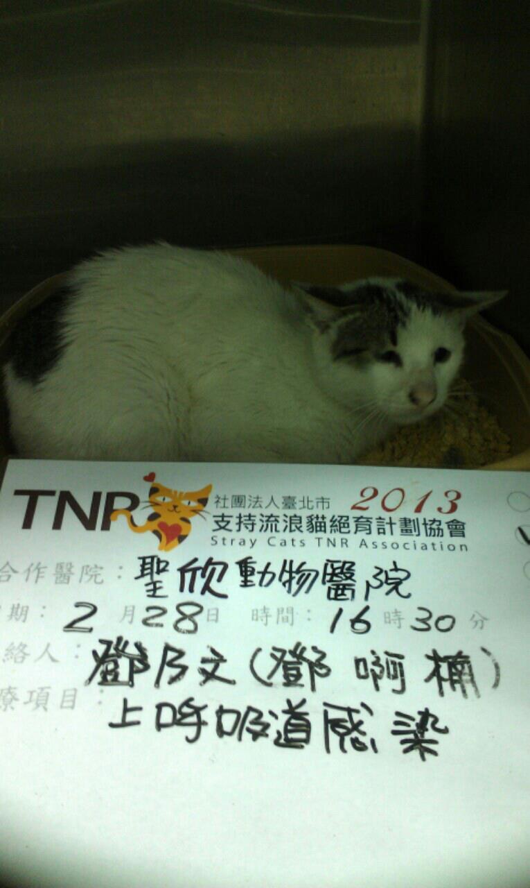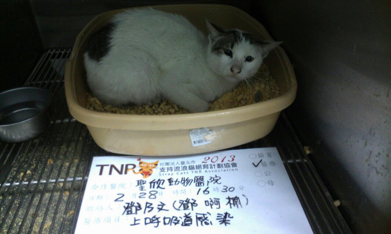 主題: 眷村小貓 白灰貓 申請者姓名: 鄧啊楠 花色: 申請日期: 2013-03-17 22:29:17 申請者部落格: 申請者臉書網址: 所在縣市/合作醫院: 台中市/聖欣動物醫院 治療費用: 5100元 需求人數: 6人 已結案 (2013-04-12 11:05:17) 報名人員: Diamond Wu(已付款)、季喵獸(已付款)、Jason Chang x4(已付款)、 候補人員: 動物病情說明: 他是在豐原後火車站的小眷村生活的貓~