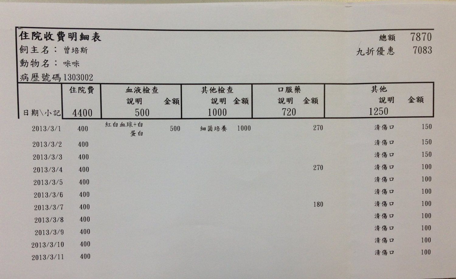 7∼8是從楊動物醫院轉到長青,醫師檢查傷口時的照