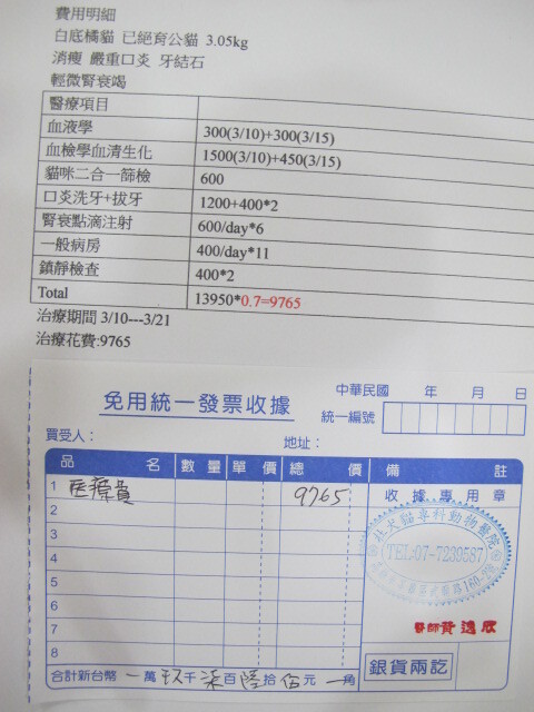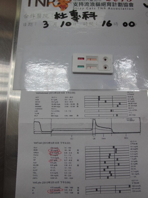 醫院幫他做了血檢, 洗牙與拔牙, 還有腎衰點滴注射.