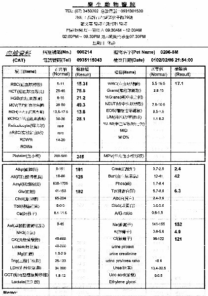 主題: 農曆年前 壽山收容所領出貓咪口炎拔牙 申請者姓名: 劉素鳳 花色: 申請日期: 2013-03-15 22:21:15 申請者部落格: 申請者臉書網址: 所在縣市/合作醫院: 高雄市/樂生動物醫院 治療費用: 4400元 需求人數: 10人 已結案 (2013-06-27 14:25:31) 報名人員: 藍波(已付款)、布蘭卡小姐(已付款)、徐雅嬪(已付款)、Kiki Liang(已付款)、Ping Meng(已付款)、Angel Liao(已付款)、Maggie Chen x4(已付款)、 候補人員: 動物病情說明: 高雄收容所貓-第二筆醫助(共三筆)