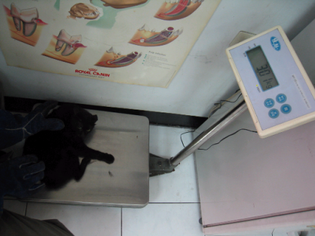 當下與醫師討論後,因為太瘦一定有健康的問題,所以暫緩TNR∼先養胖後,再行結紮。