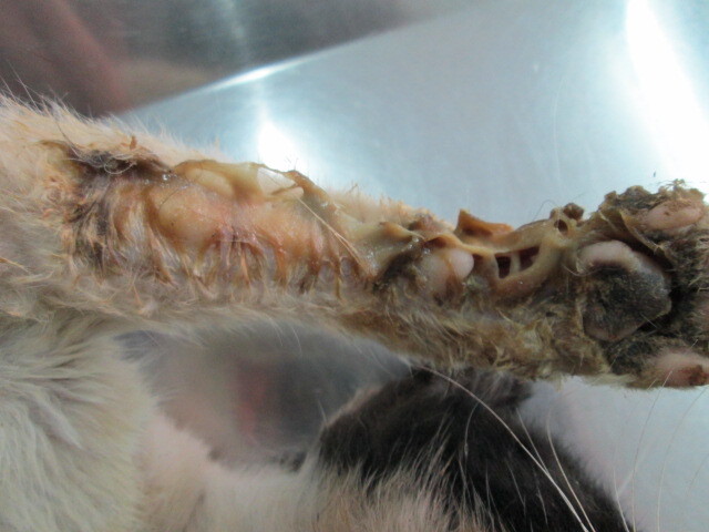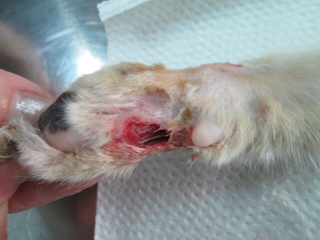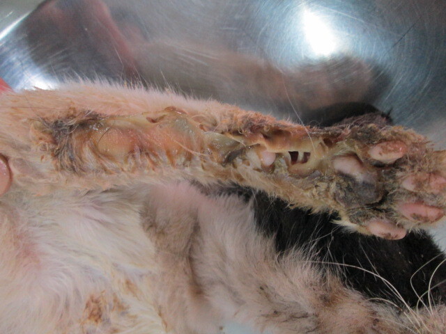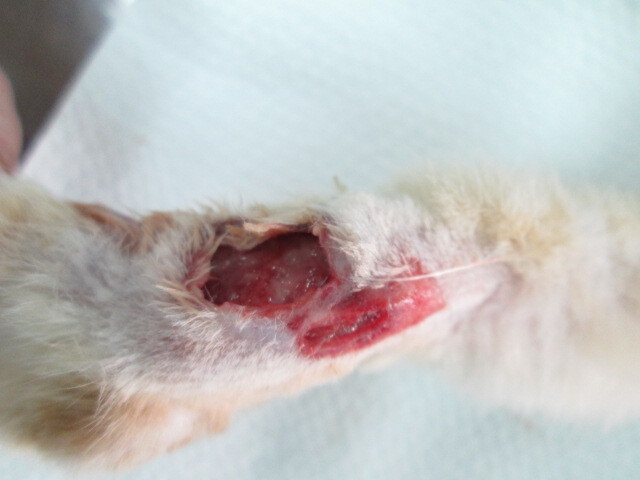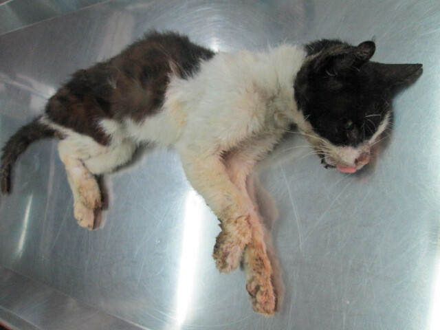 主題: 屏東流浪公貓待援 申請者姓名: 謝孟芬 花色: 申請日期: 2013-03-23 18:23:26 申請者部落格: 申請者臉書網址: 所在縣市/合作醫院: 屏東縣/愛生動物醫院 治療費用: 6300元 需求人數: 14人 已結案 (2013-04-12 11:07:01) 報名人員: jojo(已付款)、黃淑華(已付款)、kaidoubibi(已付款)、Vincent Ho(已付款)、Chia-ling Shih(已付款)、nuchimera(已付款)、高小玉(已付款)、味噌 x2(已付款)、josephine Tai(已付款)、KO.PON(已付款)、王學學(已付款)、Yahan Yang(已付款)、sabrina(已付款)、 候補人員: sabrina、 動物病情說明: 最初僅發現左眼角膜潰瘍、身上多處皮膚病,交由動物醫院洗澡、傷口治療、住院,原本預期眼傷好轉即可進行結紮手術,但意外發現後腳有嚴重傷口化膿,經血液檢查後,發現貓愛滋,並且導致免疫力急速下降和急性腎衰竭,雖然醫生給予點滴治療,仍不治。大體已經火化處理,謝謝各位的關心和協助。 動物近況說明: 3/11 麻醉美容$500