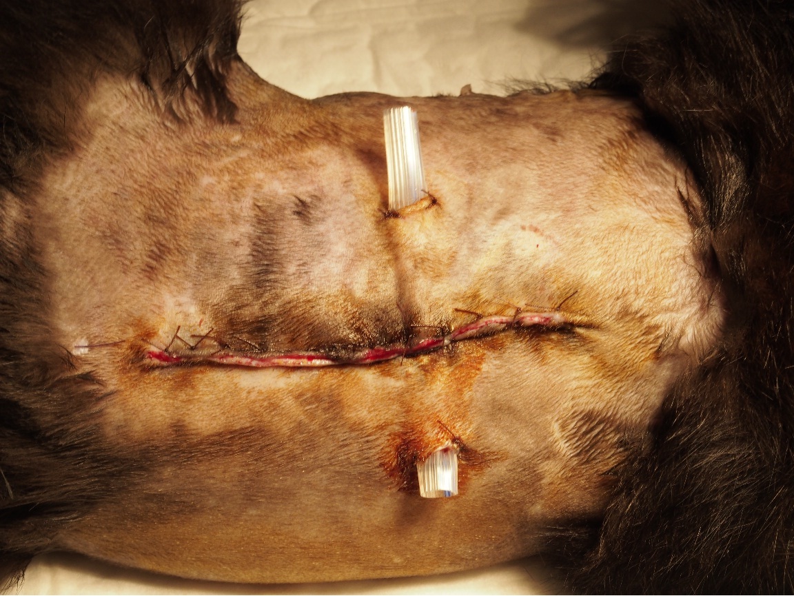 帶去給醫生看,醫生把毛剃掉以看到肉,有4個大洞,