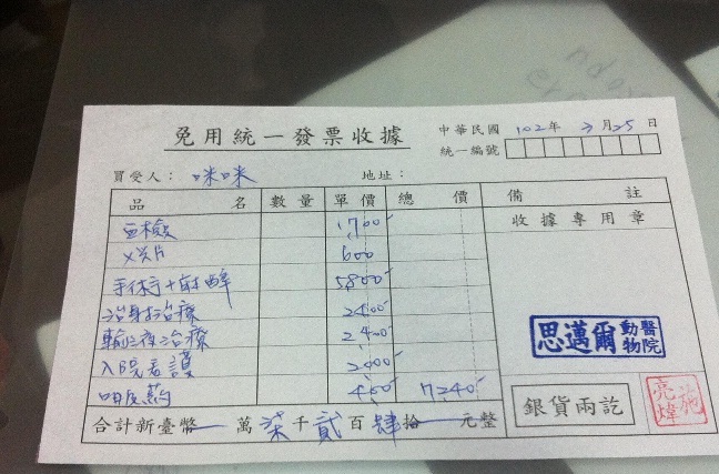 後腿部分X光照出無太大問題,骨頭與肉已長出,所以不用動手術,