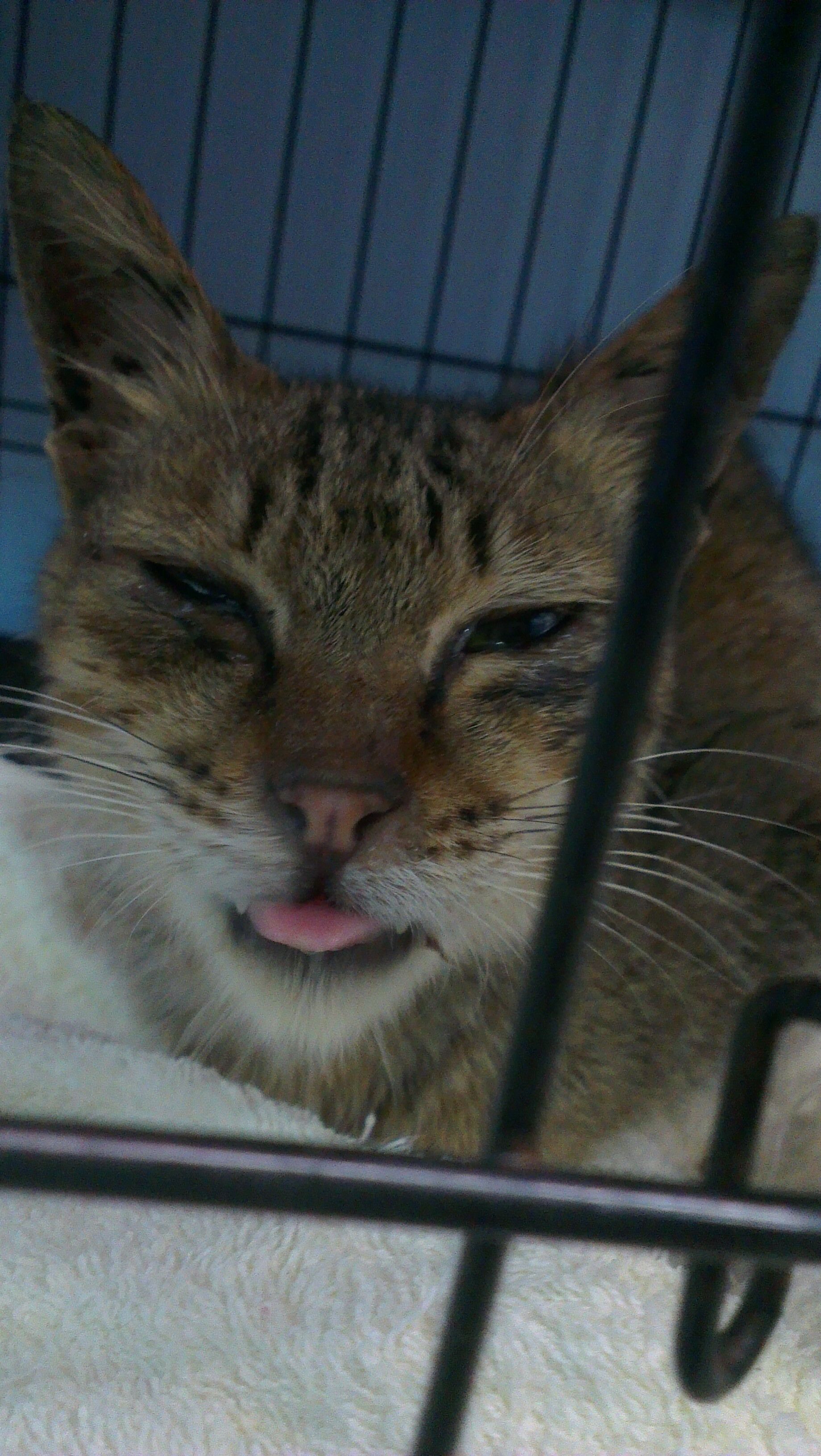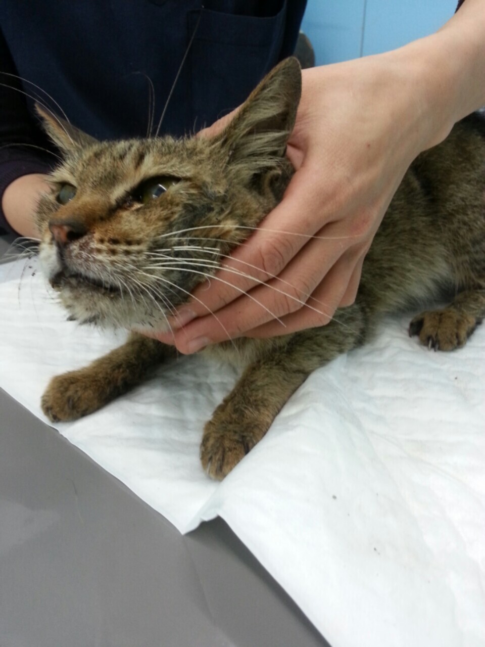 主題: 聰明會求救的口炎虎斑 嚴重上呼吸道感染 申請者姓名: 埋愛葬心 花色: 申請日期: 2013-04-24 18:40:59 申請者部落格: 申請者臉書網址: https://www.facebook.com/home.php 所在縣市/合作醫院: 桃園縣/綠光動物醫院 治療費用: 9000元 需求人數: 10人 已結案 (2013-06-27 14:23:50) 報名人員: Tetsu(已付款)、李寶寶(已付款)、翅膀(已付款)、火鳳貍(已付款)、Jillfly(已付款)、Amy Lin x2(已付款)、丁小丁(已付款)、賴小狗(已付款)、邱惠卿(已付款)、 候補人員: 動物病情說明: 餵貓時候巧遇一隻病貓 不是固定客