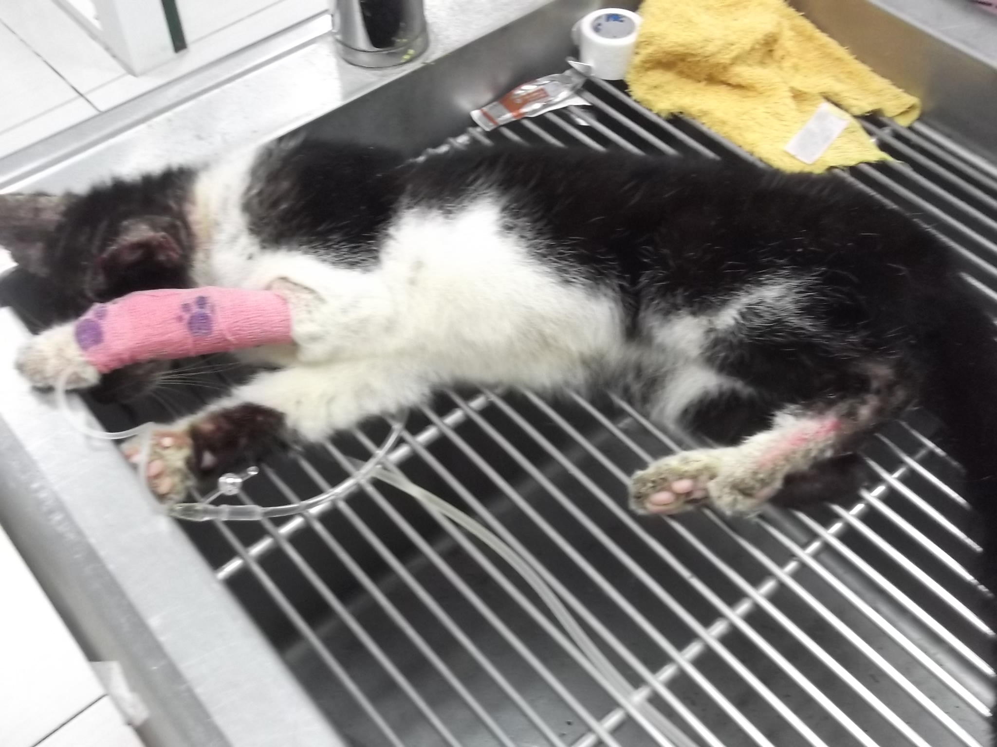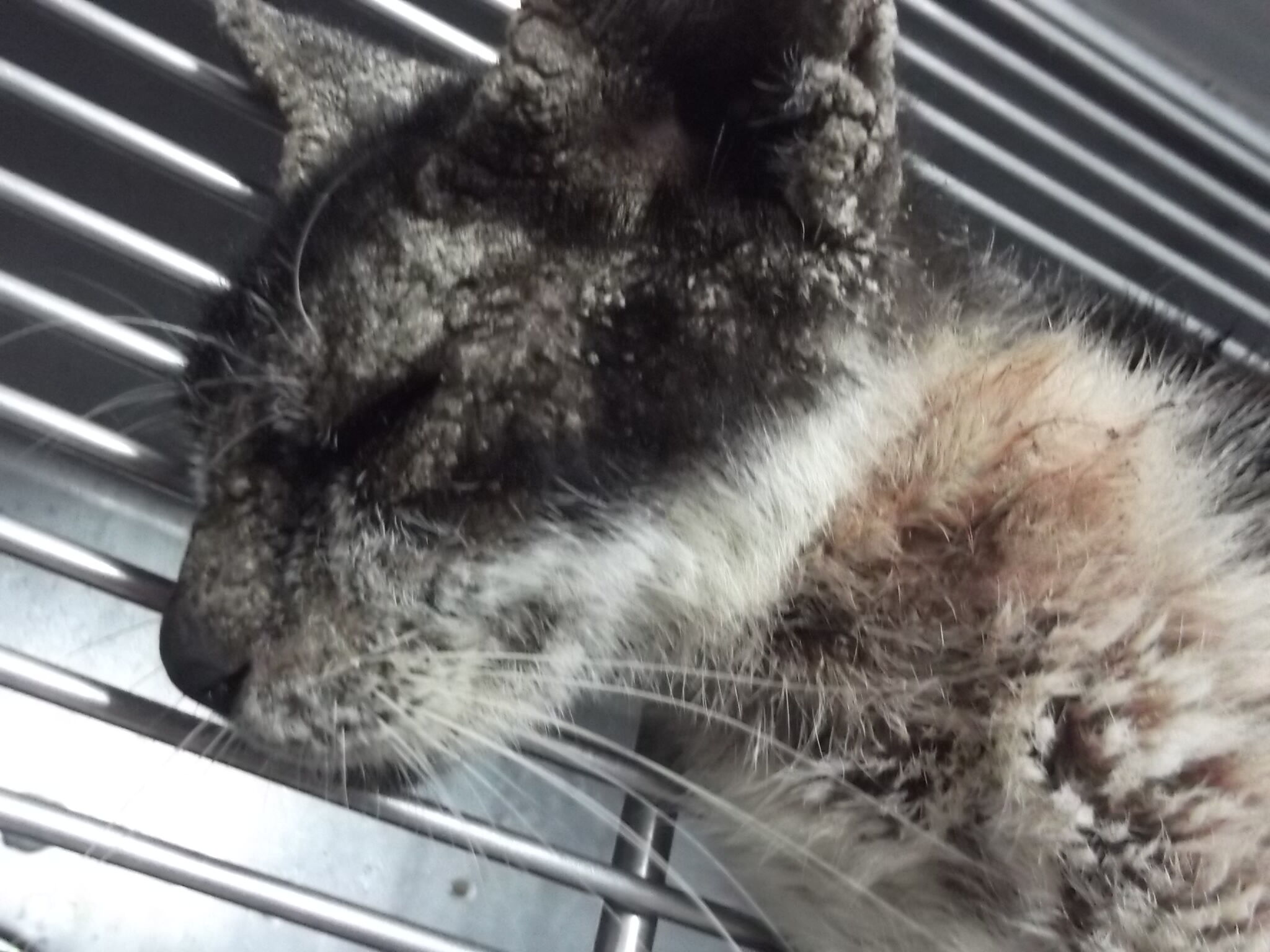主題: 鼎吉街 大樓疥癬嚴重的貓咪 申請者姓名: 劉雅雲 花色: 申請日期: 2013-04-11 08:14:24 申請者部落格: 申請者臉書網址: 所在縣市/合作醫院: 高雄市/樂生動物醫院 治療費用: 8100元 需求人數: 18人 已結案 (2013-09-03 16:28:56) 報名人員: 邱雅雯(已付款)、小寶兔(已付款)、Max(已付款)、Chloe(已付款)、Ya-Hsien Yang x2(已付款)、清兒(已付款)、陳欣欣、黑執事 x2(已付款)、胖大德(已付款)、Rita Huang(已付款)、洪靜怡(已付款)、林先生(已付款)、Winnie Chen x2(已付款)、Vicky Chen(已付款)、Wanyu(已付款)、Hsiao-Yu Lin、Aaron lin、MeiDan Wang(已付款)、 候補人員: 陳信良、Ivy Shen、 動物病情說明: 發現貓咪當晚是快半夜時下樓餵門口浪貓時發現對面大樓草皮上嚴重疥癬的貓咪, 先偷把他抓起來裝在提籠裡藏在車庫. 皮膚狀況感覺很嚴重需要就醫治療. 在醫院治療兩週後, 出院暫時寄放朋友家照顧和餵藥等皮膚完全恢復再考慮放回.