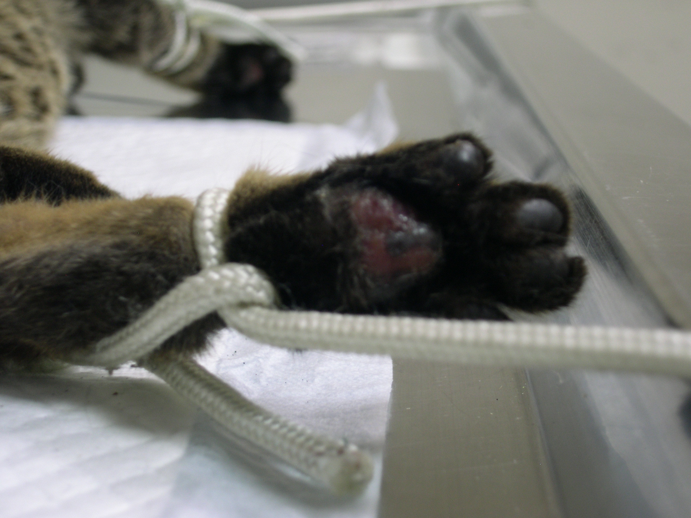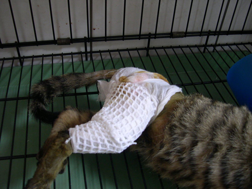 主題: 收容所骨折、腳長擦傷的虎斑青少年 申請者姓名: 蔡葦澄 花色: 申請日期: 2012-04-26 00:14:29 申請者部落格: 申請者臉書網址: 所在縣市/合作醫院: 台北市/恩加動物醫院 治療費用: 11600元 需求人數: 12人 已結案 (2012-11-24 12:50:27) 報名人員: 嘟嘟(已付款)、李芝瑩(已付款)、Jennifer Hu(已付款)、misselaine(已付款)、桔媽(已付款)、黃正咩(已付款)、philip(已付款)、陽羊(已付款)、Hsin-Yi Chiao(已付款)、sally(已付款)、sally(已付款)、sally(已付款)、 候補人員: 小舟、小舟、小舟、 動物病情說明: 4/24從內湖動物之家帶出大同區玉泉里3~6個月大的虎斑貓,收容公告上寫「後肢傷」,經觀察腳無法著地有可能是骨折,送至恩加動物醫院,X光確認右後肢斷,需手術接骨固定,腳掌也有擦傷的痕跡,術後還須密切觀察骨頭接合狀況,為避免前功盡棄,會在醫院醫療直至復原,若醫療期間貓咪變的親人會進行送養。住院醫療含手術、X光等,需要醫療費用11600,懇請大家幫忙,若沒有及時送醫,腳有可能因為拖行破皮、感染造成不可逆的傷害。