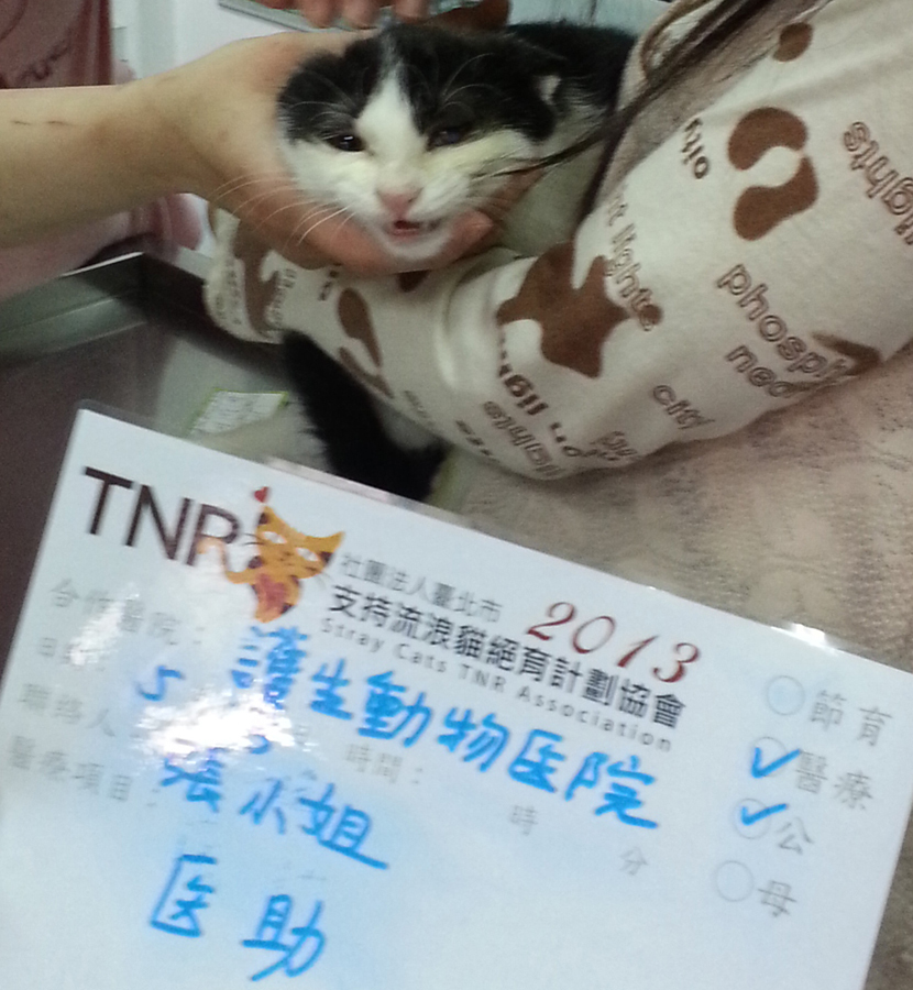 主題: 眼睛有感染,目前已經送醫 申請者姓名: 張嘉玲 花色: 申請日期: 2013-05-28 18:57:47 申請者部落格: http://forum.gamer.com.tw/C.php?bsn=60546&snA=3517&last=1#down 申請者臉書網址: 所在縣市/合作醫院: 新北市/護生動物醫院 治療費用: 10700元 需求人數: 23人 已結案 (2013-06-27 14:28:23) 報名人員: 林沛蓉(已付款)、沛慈(已付款)、beforn x2(已付款)、惠青(已付款)、Way Chen、Way Chen(已付款)、詹雅茜(已付款)、GreenFire(已付款)、Nata Chen(已付款)、Brenda(已付款)、陳靖琳(已付款)、詹雅茜、Joba Huang(已付款)、vivian(已付款)、LuLu(已付款)、Bow Huang x4(已付款)、Liao Tzuyi(已付款)、MiMi-cLaudia Yu(已付款)、Mickey Han x2(已付款)、楊政遠(已付款)、 候補人員: 動物病情說明: 每天會在樓下放飼料餵食流浪貓,發現這隻小貓咪眼睛受傷,真的很想幫助他,但礙於目前待業中,無多餘的前再支付醫療費用,但又不能眼睜睜的看他生病而不醫療,貓非常膽小怕人,稍微靠近就會跑掉,經詢問協會決定先至動物醫院借誘捕籠,捕抓後送到協會配合的醫院治療,發現右眼感染嚴重,噴嚏連連,自己本身沒有養過動物,為了這隻貓咪也開始準備籠子等東西,希望他狀況穩定可以中途讓他休養,住院治療狀況改善許多,也先帶回調養身體,很遺憾眼睛留下後遺症,只能勤點眼藥水看有沒有機會復原,希望大家幫忙這隻貓咪。謝謝