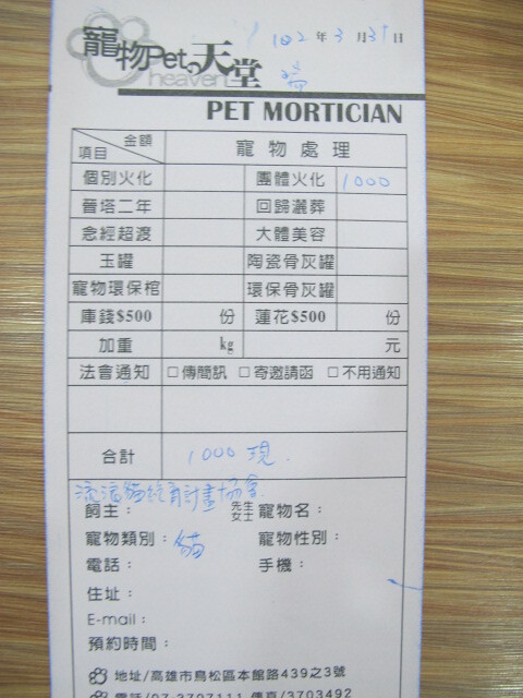 收據可抵稅請將地址mail至cashier@tnrtw.org0912940006763