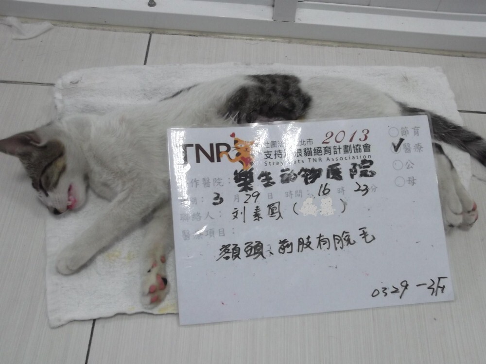 主題: 0327壽山收容所 消瘦及脫水 額頭、前肢有脫毛,皮膚病 申請者姓名: 劉素鳳 花色: 申請日期: 2013-04-25 07:20:03 申請者部落格: 申請者臉書網址: 所在縣市/合作醫院: 高雄市/樂生動物醫院 治療費用: 7300元 需求人數: 8人 已結案 (2013-06-27 14:33:45) 報名人員: grace0314(已付款)、Melody Wu(已付款)、Karen Hsieh(已付款)、Wei-wen Chang(已付款)、Elaine Yang(已付款)、Stacey Ma x2(已付款)、Rosa Lin(已付款)、 候補人員: 動物病情說明: 0328-1M 已結紮,消瘦及脫水