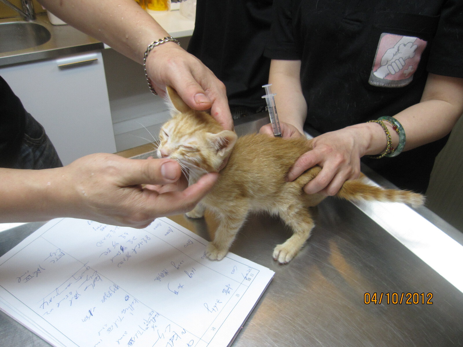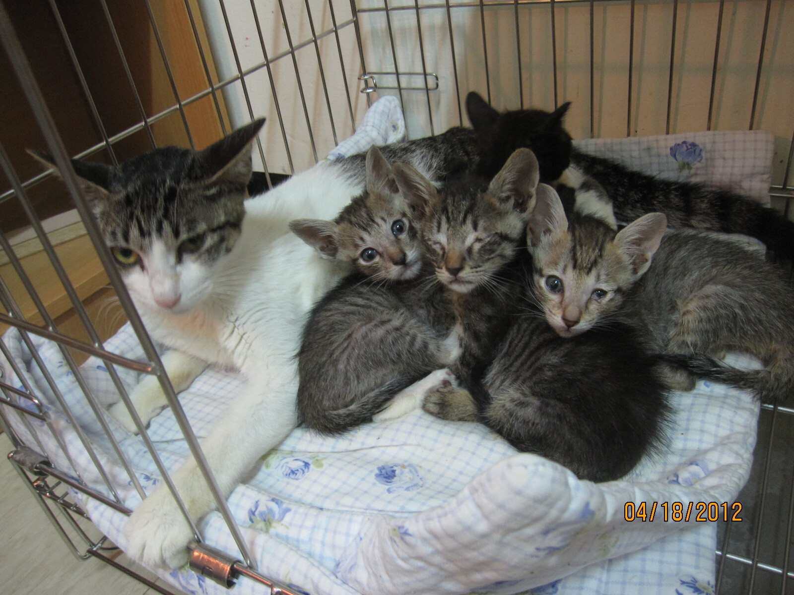 在為數可觀的貓咪生病中,我們也有損失貓咪,甚至有二隻餵奶母貓因感染感冒病毒,而食慾不佳,而又小貓大量吸奶,致母貓脫水住院治療,此時小貓也一併治療感冒,並接手人工餵食,等母貓康復出院,再行餵奶
