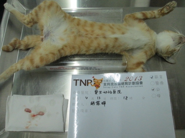 主題: 被車撞的可憐小黃貓 申請者姓名: 趙慧曄 花色: 申請日期: 2013-04-23 22:11:32 申請者部落格: 申請者臉書網址: http://www.facebook.com/profile.php?id=100000504239033 所在縣市/合作醫院: 屏東縣/愛生動物醫院 治療費用: 3500元 需求人數: 8人 已結案 (2013-06-27 14:33:08) 報名人員: Nata Chen(已付款)、Rachel Huang x2(已付款)、Ping Meng(已付款)、Vivienne Peng(已付款)、Winnie Chou(已付款)、Liyun Chang(已付款)、邱惠卿(已付款)、 候補人員: 動物病情說明: 在龍泉村崇文國中旁遭車子撞擊的小黃貓當晚救援先安置一晚一早送愛生醫院檢查治療麻醉照X光無骨折但腹部尾部大片瘀青~經醫師打針住院治療已無大礙結紮!!選離救援他的地方離200公尺TNR友善的住戶區野放放回!!謝謝大家的愛心!! 動物近況說明: 今天早上選在崇文國中200公尺旁友善的TNR住戶區野放嚕!!動作非常迅速表示復原得非常好喔!!