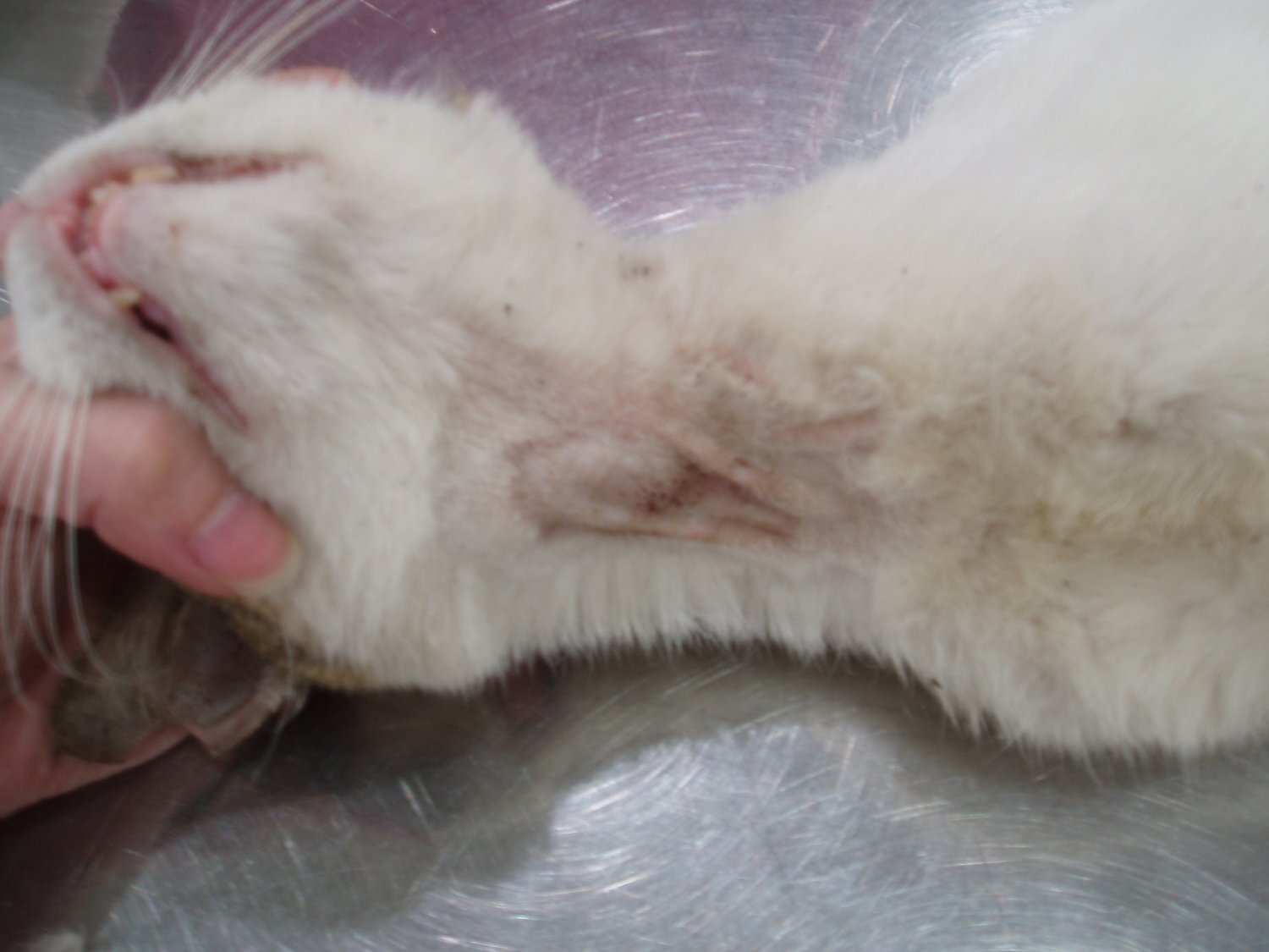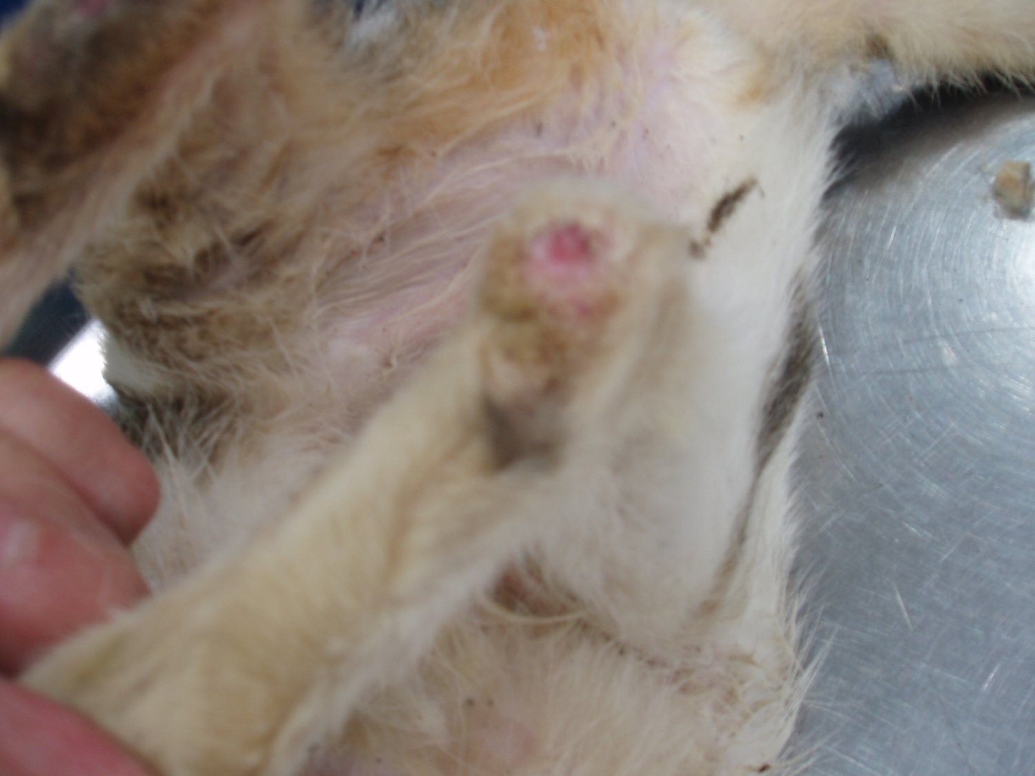 濕疹的問題,造成脫毛及皮膚病變,也一起送醫治療,一隻看起來像有剪耳的橘白