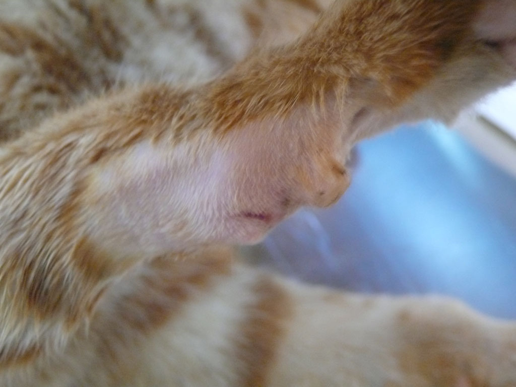 卻意外的發現了牠的右前腳腫了起來,且有掰咖現象 於是捕捉了牠!