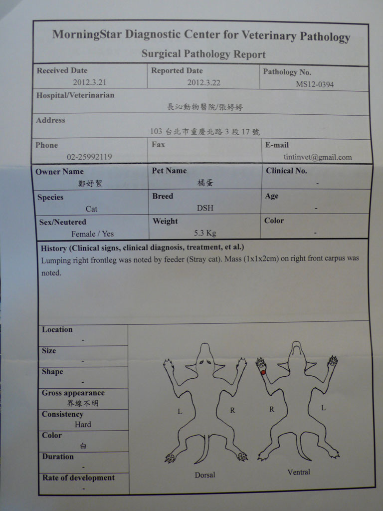 經過檢查牠的右前腳有一顆不小的腫瘤