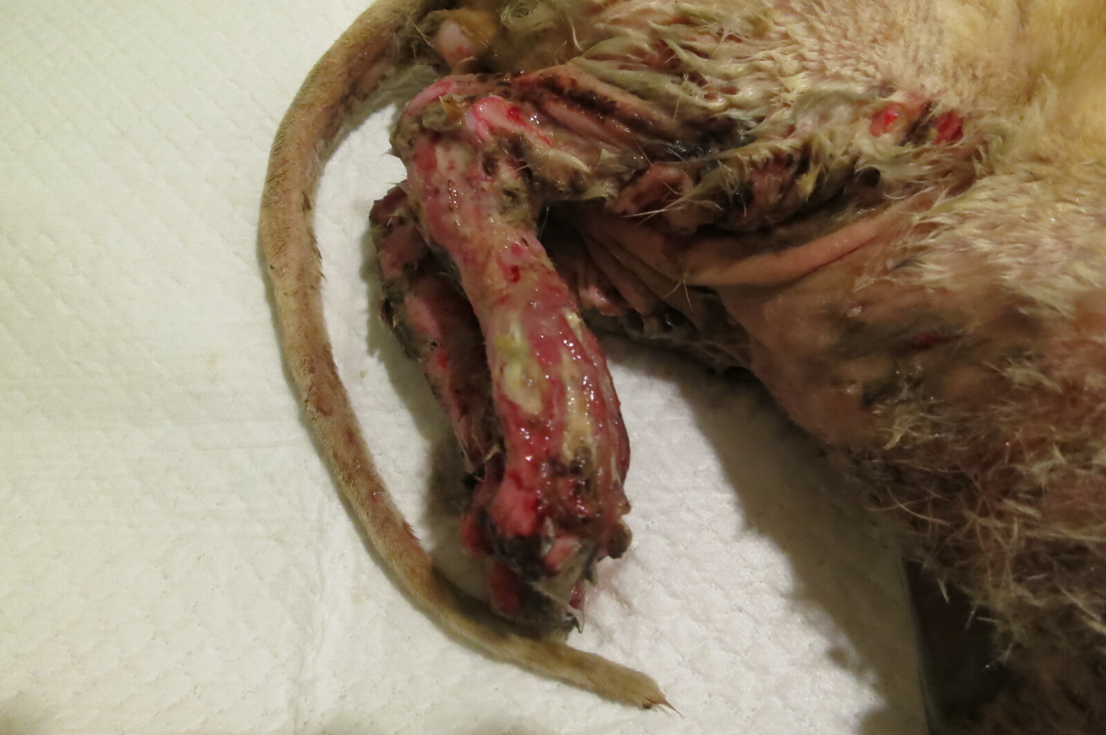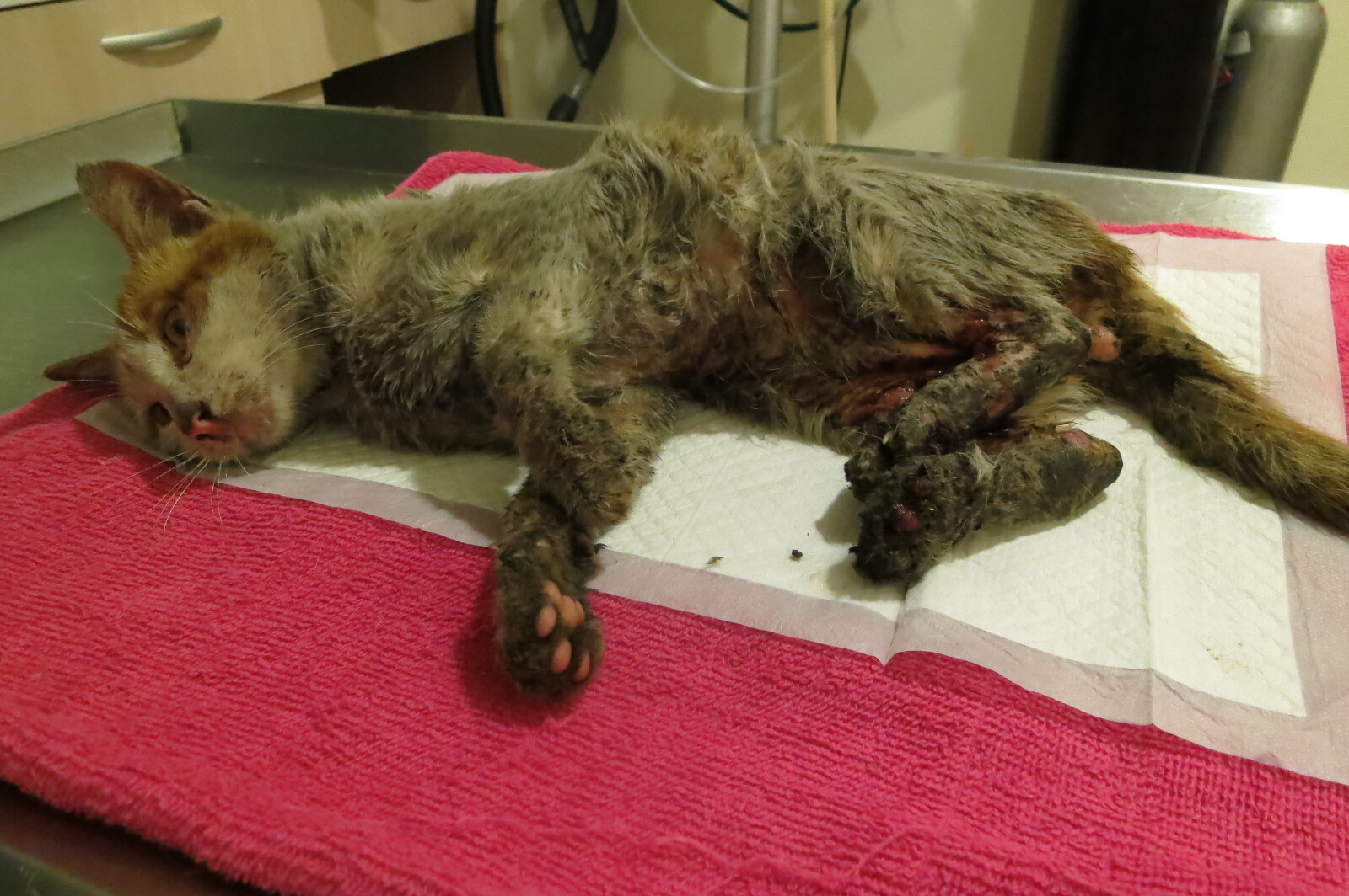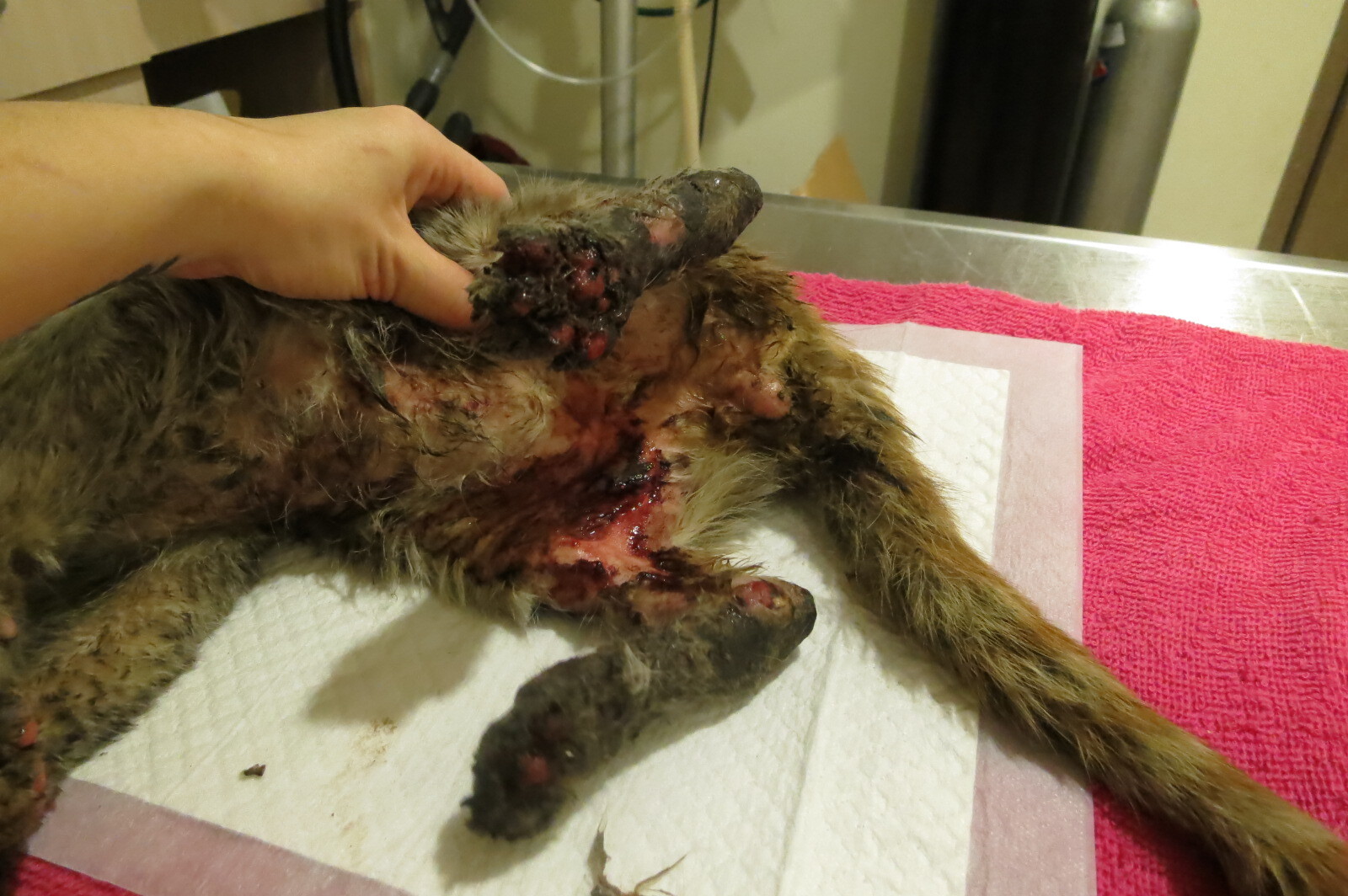 主題: 湳中爛腳傷貓 申請者姓名: 黃琦雁 花色: 申請日期: 2013-06-11 22:30:07 申請者部落格: 申請者臉書網址: 所在縣市/合作醫院: 新竹市/新竺動物醫院 治療費用: 22500元 需求人數: 24人 已結案 (2013-08-06 14:19:58) 報名人員: 緣緣寶貝 x5(已付款)、小瓜、小瓜(已付款)、WeiLin Chen(已付款)、罐頭(已付款)、林韋韋(已付款)、MuMu Lee、Penny Pan x3(已付款)、天真(已付款)、Ea Ting Wu(已付款)、eturia(已付款)、Chu Chung(已付款)、Kimi Hsu(已付款)、黃亞凡(已付款)、Rita Chen(已付款)、劉茜文(已付款)、言則(已付款)、Kelly、波波(已付款)、沒地位的貓奴才(已付款)、蕾絮唯(已付款)、 候補人員: Chianhuei Chu、Wei-wen Chang、 動物病情說明: 20130422 我送TNR的貓去結紮.回程剛好接到電話湳中街有隻病懨懨的貓.需要救援.我就繞過去看.貓咪看起來就是狀況很差了.我就誘捕起來用紙箱裝著.貓身上發出腐臭味.送至醫院治療.醫生麻醉後.發現貓咪的雙腿皮都爛掉了.疑似是瀝青沾黏到毛跟皮.造重雙腳的皮潰爛了.貓也瘦成皮包骨.有感染危險.經過醫院清創與治療..貓咪住院治療一個多月.中間也進行人工皮治療.貓咪很幸運與堅強的活下來了.非常感謝醫院團隊的協助照顧. 動物近況說明: 6月初醫生評估傷口已經有慢慢收合..可帶回照顧2-3個月.只要 每月定期回診檢查.視狀況再進行結紮手術.所以 6/11 我將貓咪帶回家休養與照顧了.等待肉跟皮長回去.