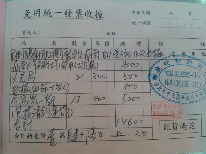 白白的治療費用較為龐大,已超出我1個人的能力所及,感恩有這個協會,救助無數浪浪們..