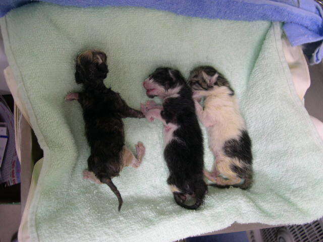 緊急的取出另外存活的三小喵,一隻還是不幸夭折