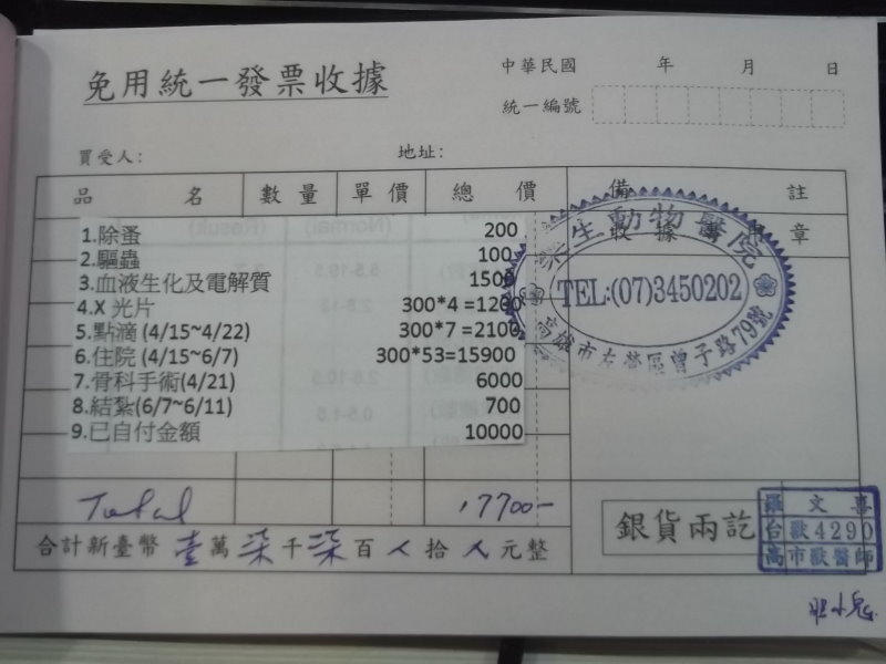 由於是剛出社會的新鮮人, 負擔不起如此龐大的費用, 希望個位能幫助我和貓咪,目前貓咪已經出院由我照顧中,醫療費用自付一萬元,其餘還請各位幫忙。謝謝!